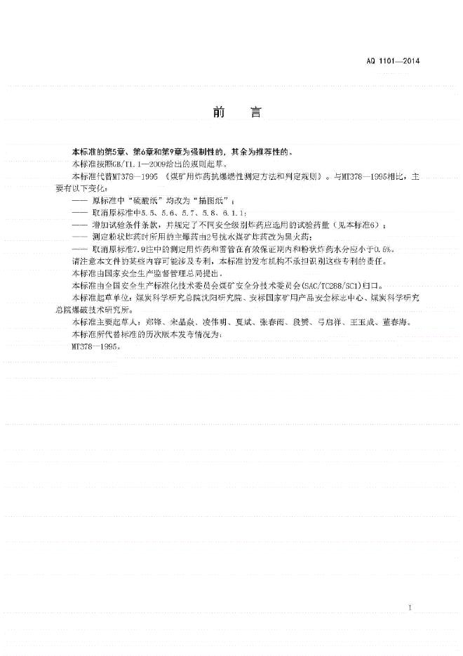 AQ 1101-2014 煤矿用炸药抗爆燃性测定方法和判定规则