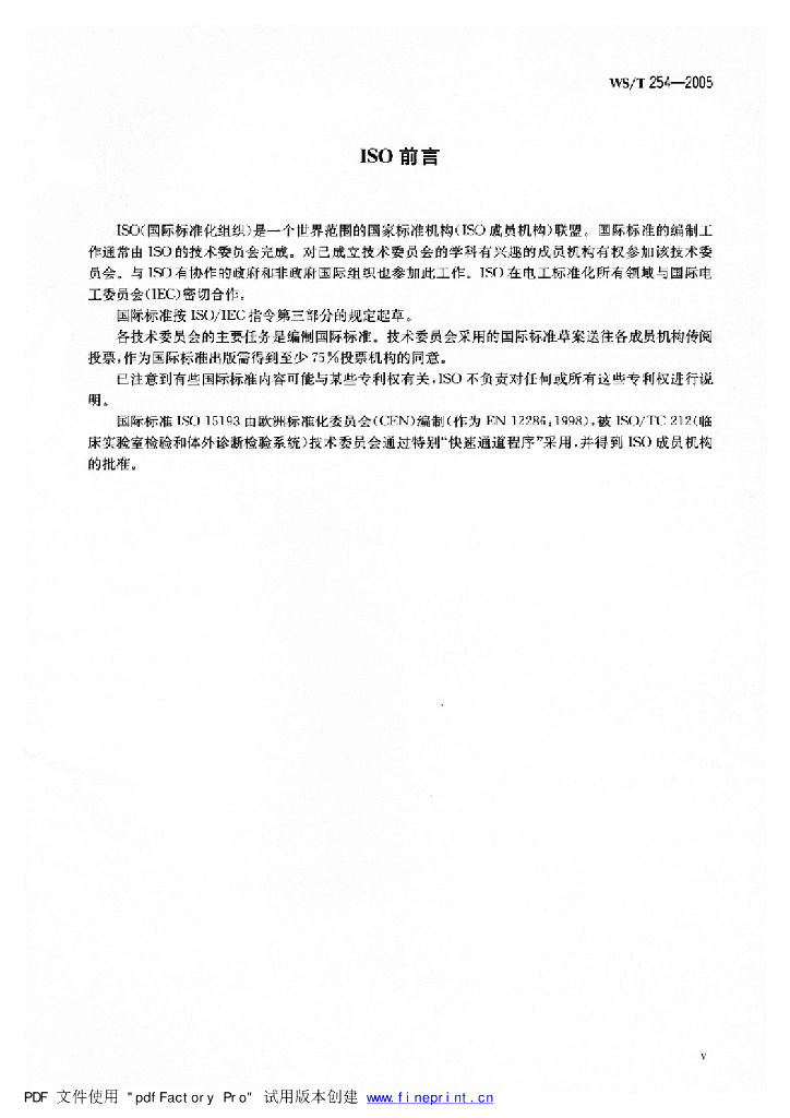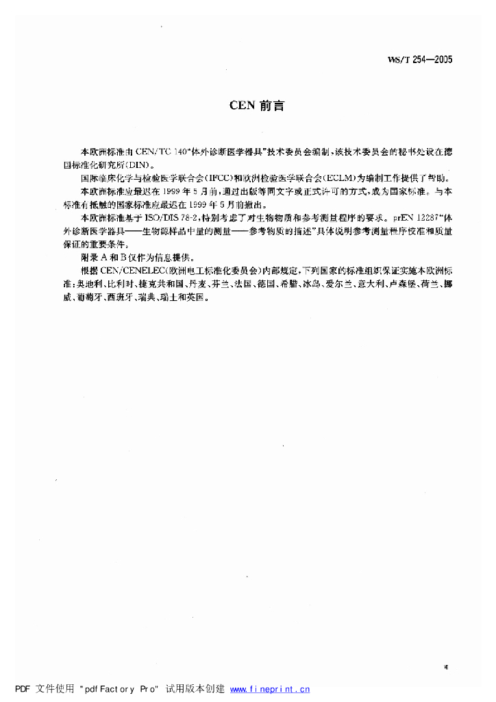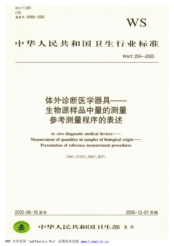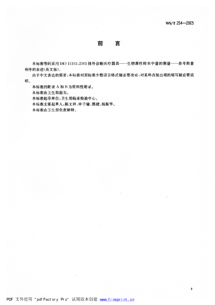 WS/T 254-2005 体外诊断医学器具 生物源样品中量的测量 参考测量程序的表述