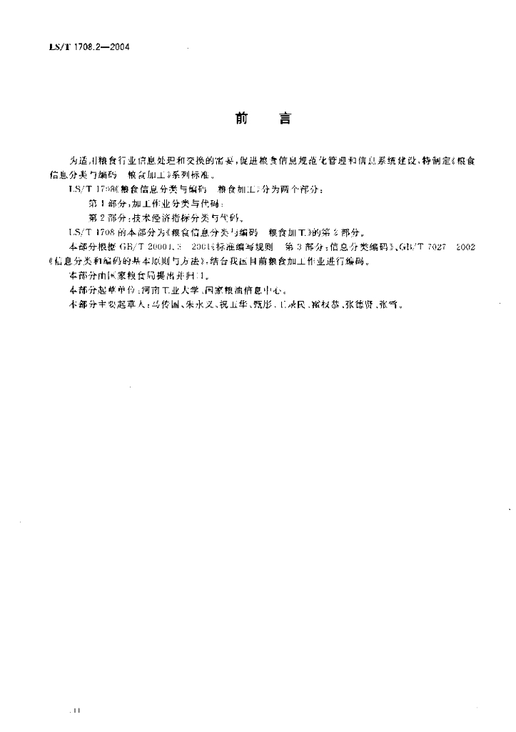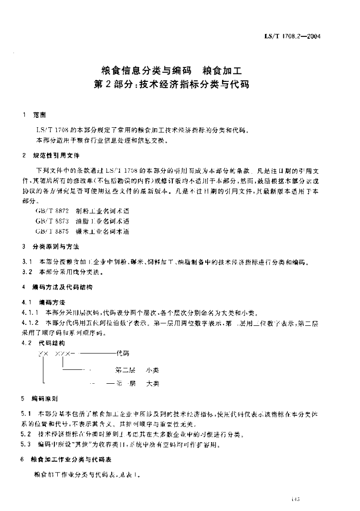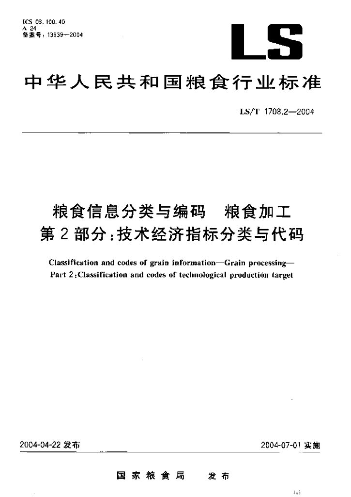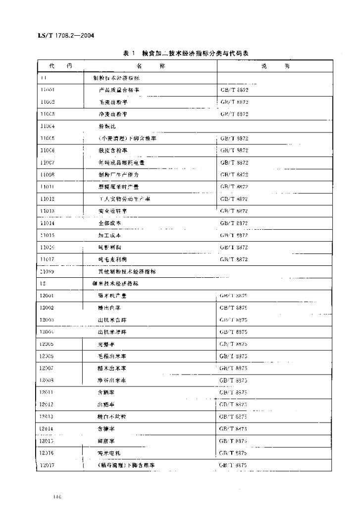 LS/T 1708.2-2004 粮食信息分类与编码 粮食加工 第2部分:技术经济指标分类与代码