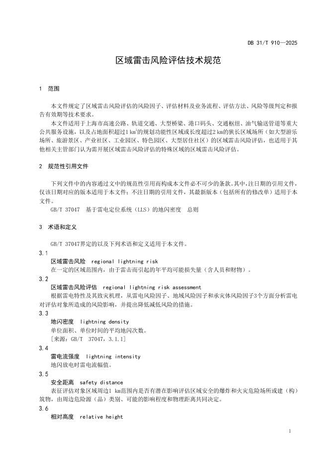 DB31/T 910-2025 区域雷击风险评估技术规范