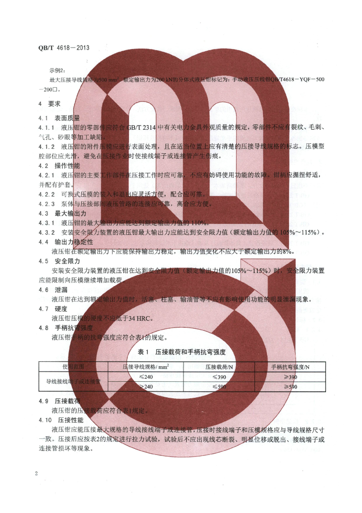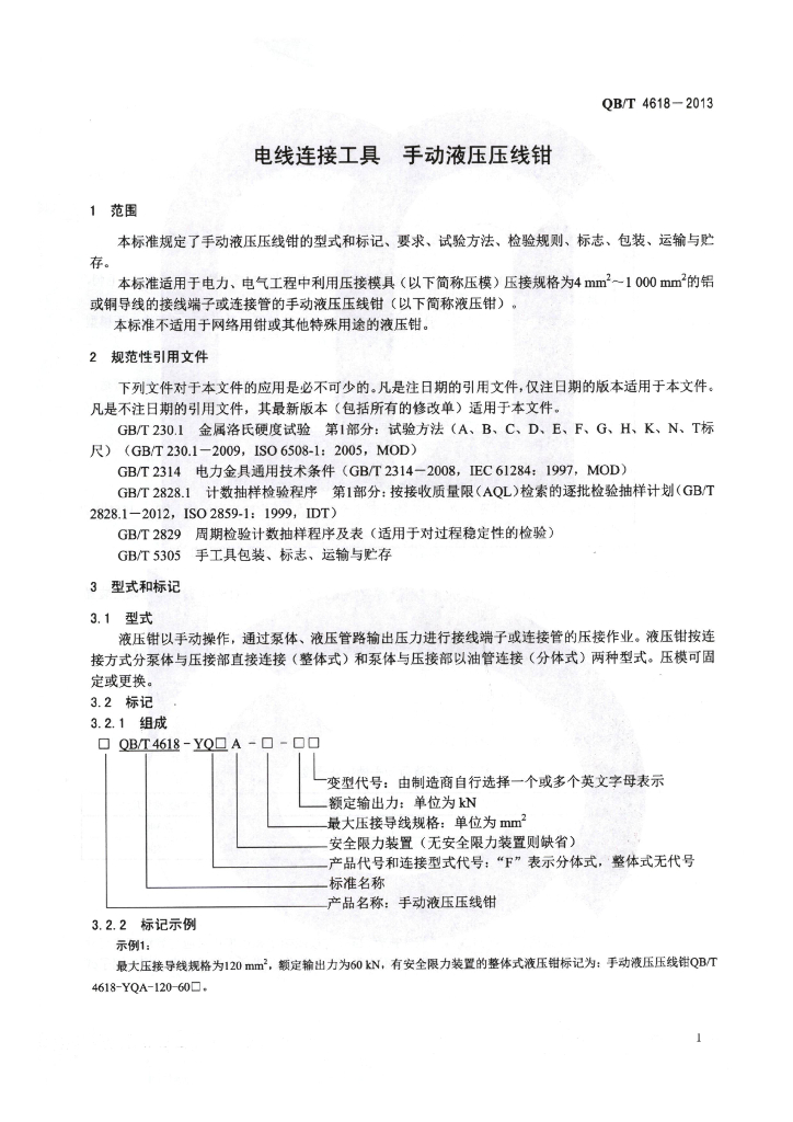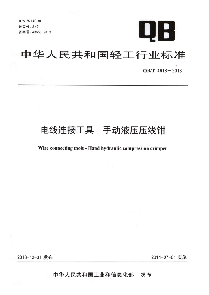 QB/T 4618-2013 电线连接工具手动液压压线钳