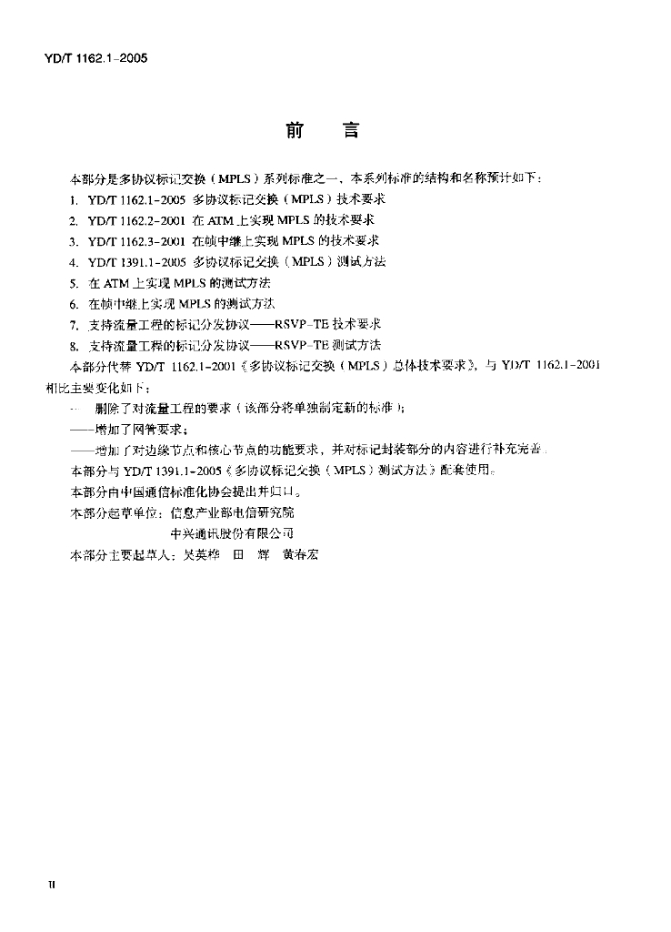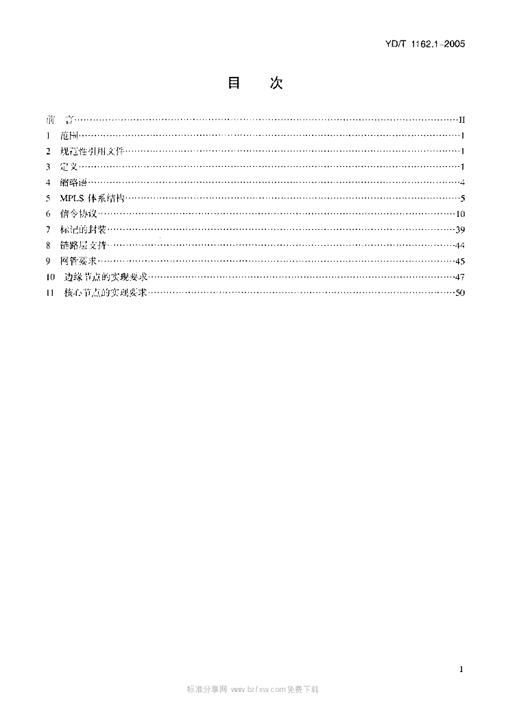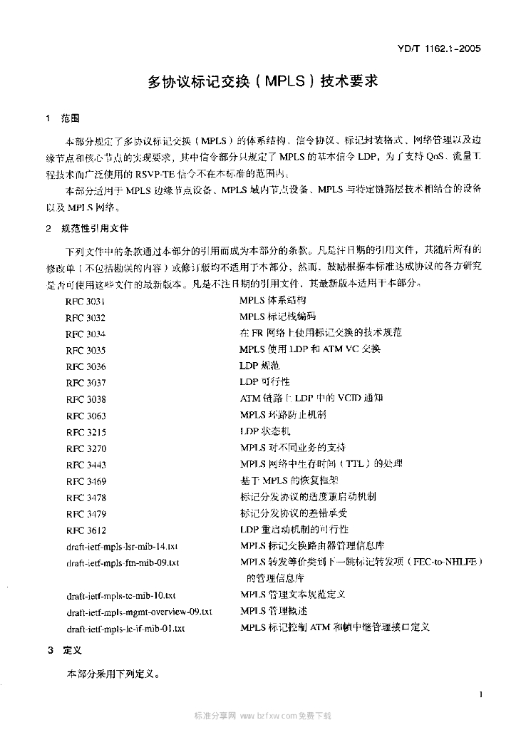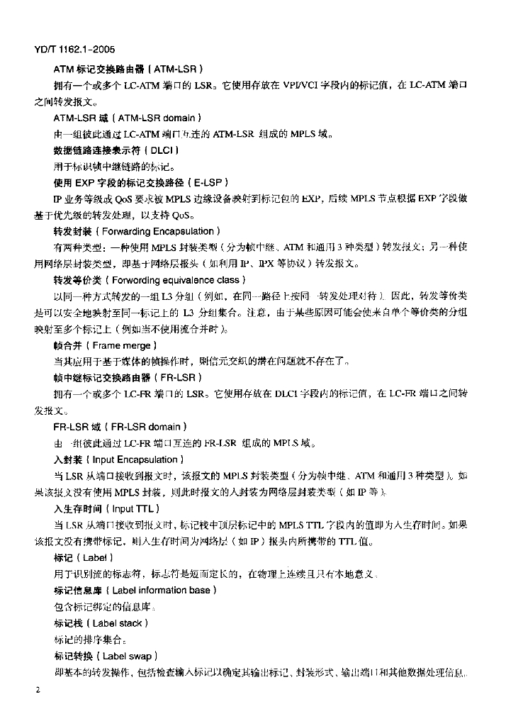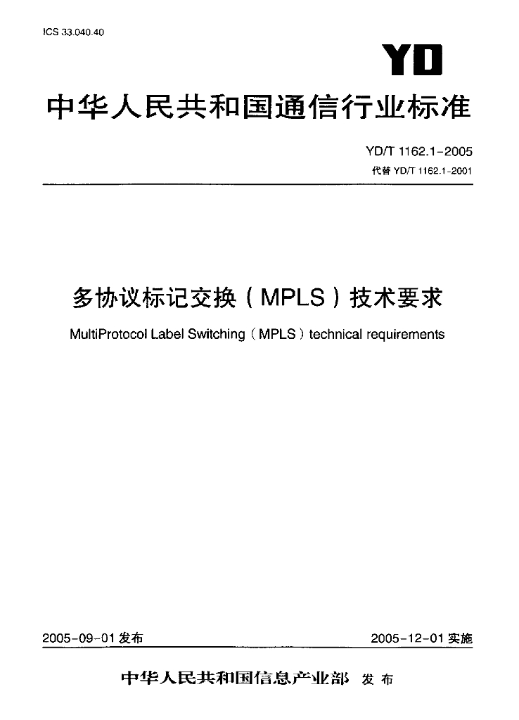 YD/T 1162.1-2005 多协议标记交换(MPLS)技术要求