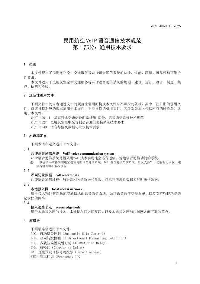 MH/T 4060.1-2025 民用航空VoIP语音通信技术规范 第1部分:通用技术要求