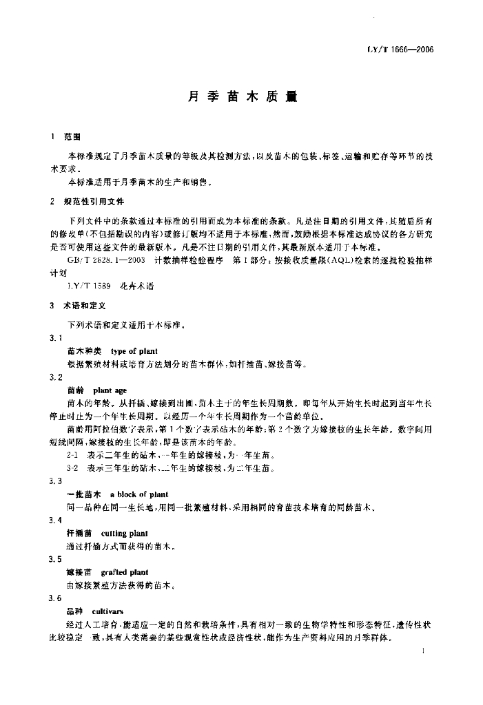LY/T 1666-2006 月季苗木质量