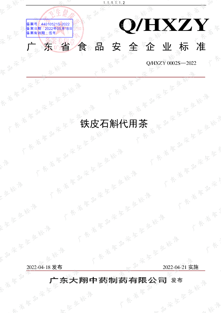 Q/HXZY 0002S-2022 铁皮石斛代用茶