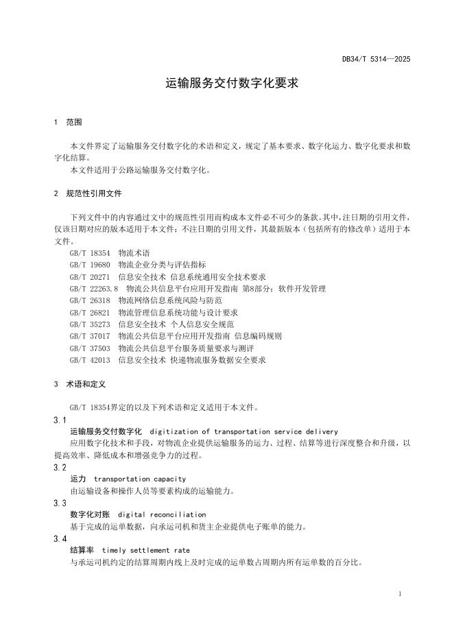 DB34/T 5314-2025 运输服务交付数字化要求