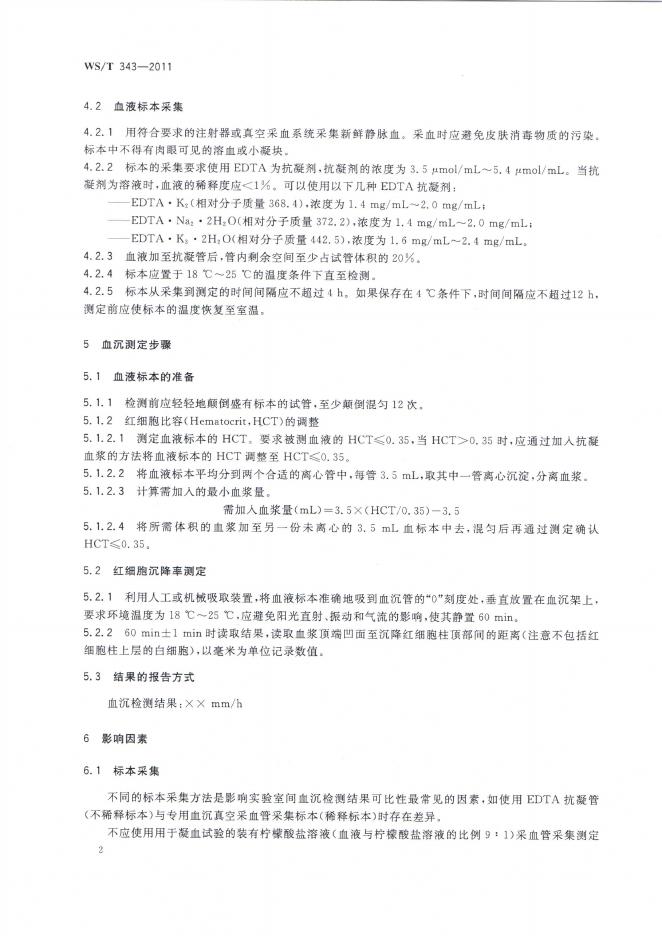 WS/T 343-2011 红细胞沉降率测定参考方法