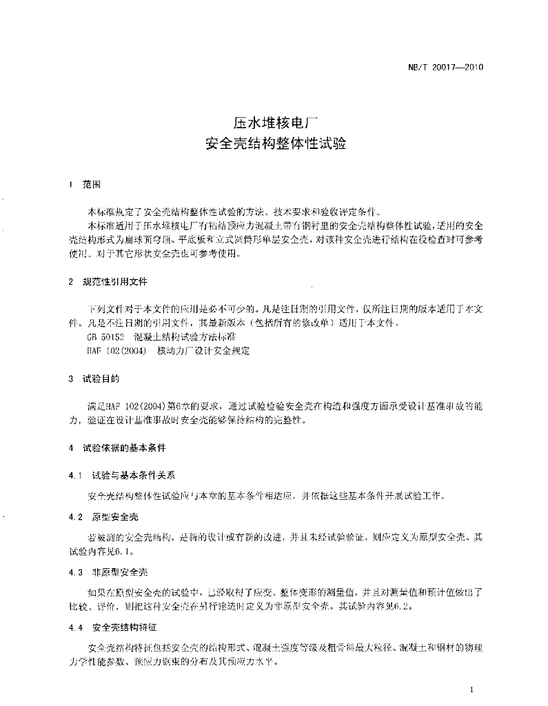 NB/T 20017-2010 压水堆核电厂安全壳结构整体性试验