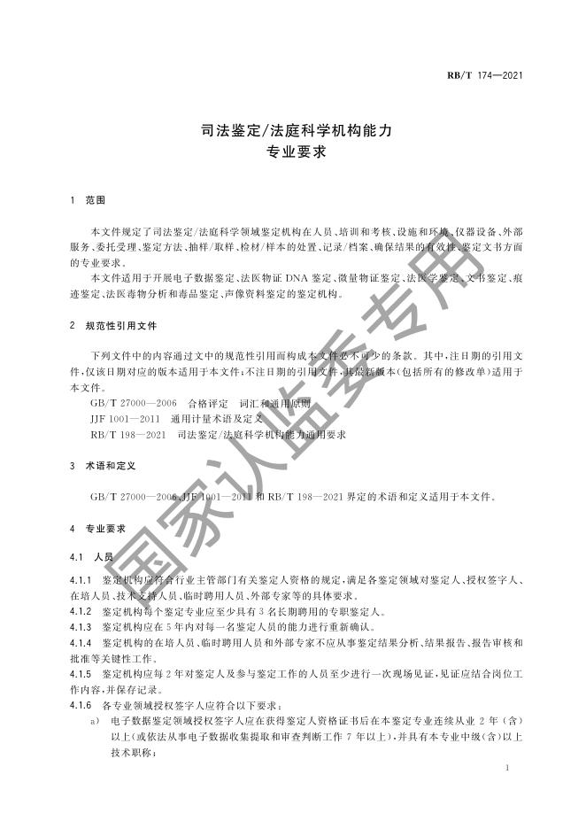 RB/T 174-2021(修订) 司法鉴定/法庭科学机构能力专业要求(修订)