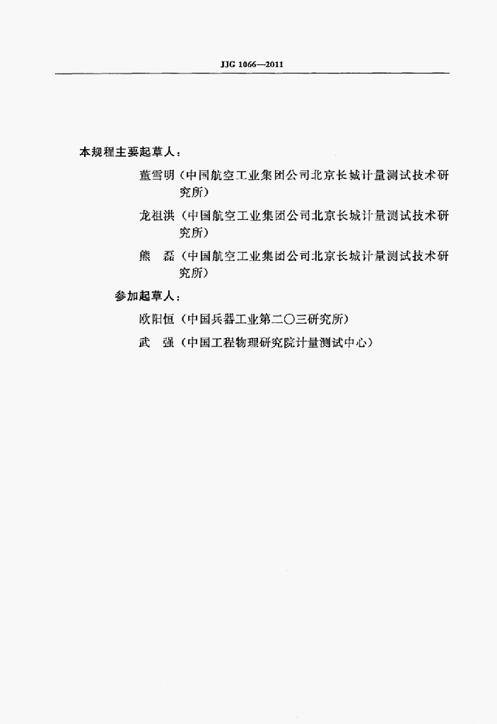 董雪明(中国航空工业集团公司北京长城计量测试技术研究所)、龙祖洪(中国航空工业集团公司北京长城计量测试技术研究所)、熊磊(中国航空工业集团公司北京长城计量测试技术研究所)、欧阳恒(中国兵器工业第二0三研究所)、武强(中国工程物理研究院计量测试中心)