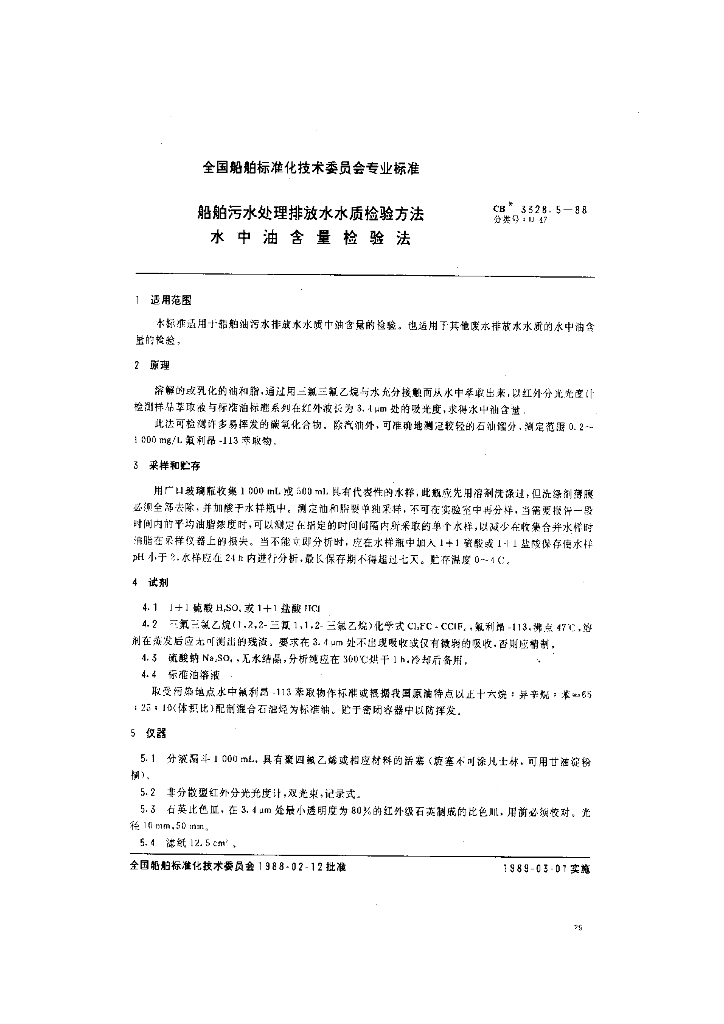 CB 3328.5-1988 船舶污水处理排放水水质检验方法 水中油含量检验法