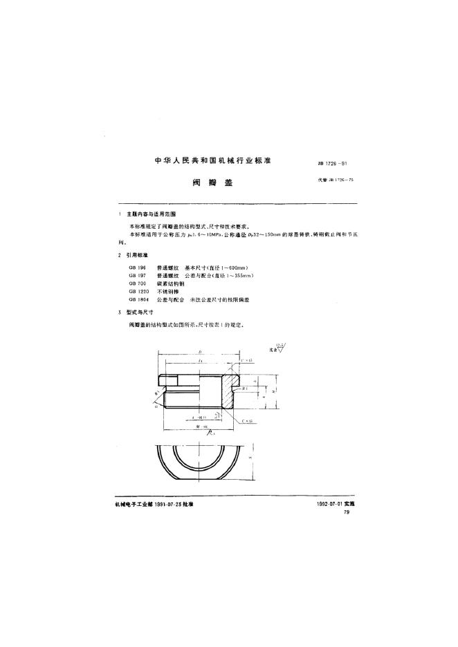 JB 1726-1991 阀瓣盖