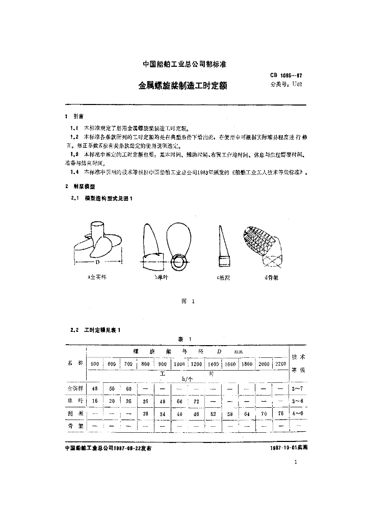 CB 1065-1987 金属螺旋桨制造工时定额