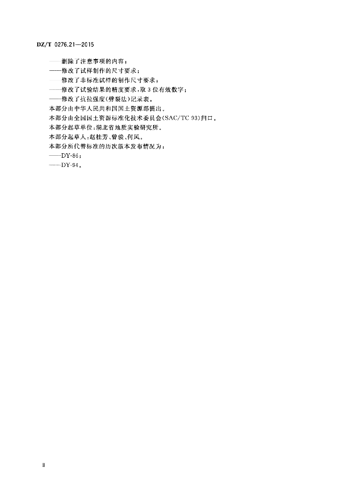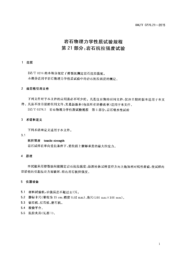 DZ/T 0276.21-2015 岩石物理力学性质试验规程 第21部分:岩石抗拉强度试验