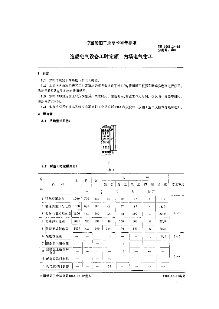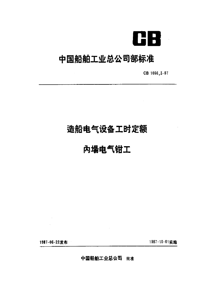 CB 1066.3-1987 造船电气设备工时定额 内场电气钳工