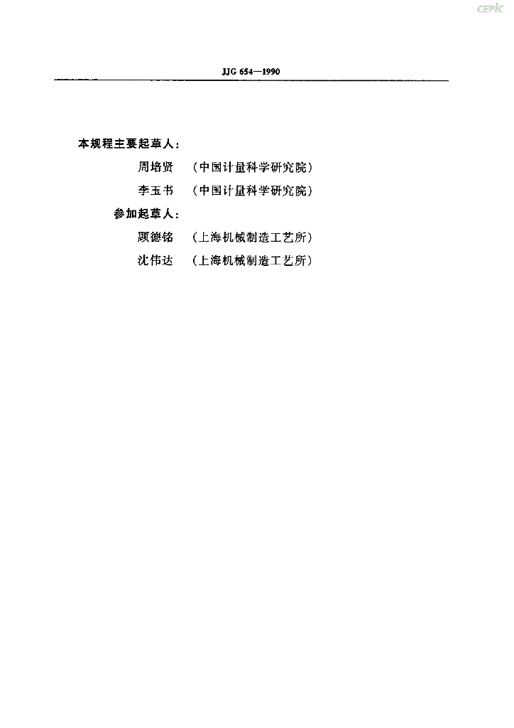 周培贤(中国计量科学研究院)、李玉书(中国计量科学研究院)、顾德铭(上海机械制造工艺所)、沈伟达(上海机械制造工艺所)