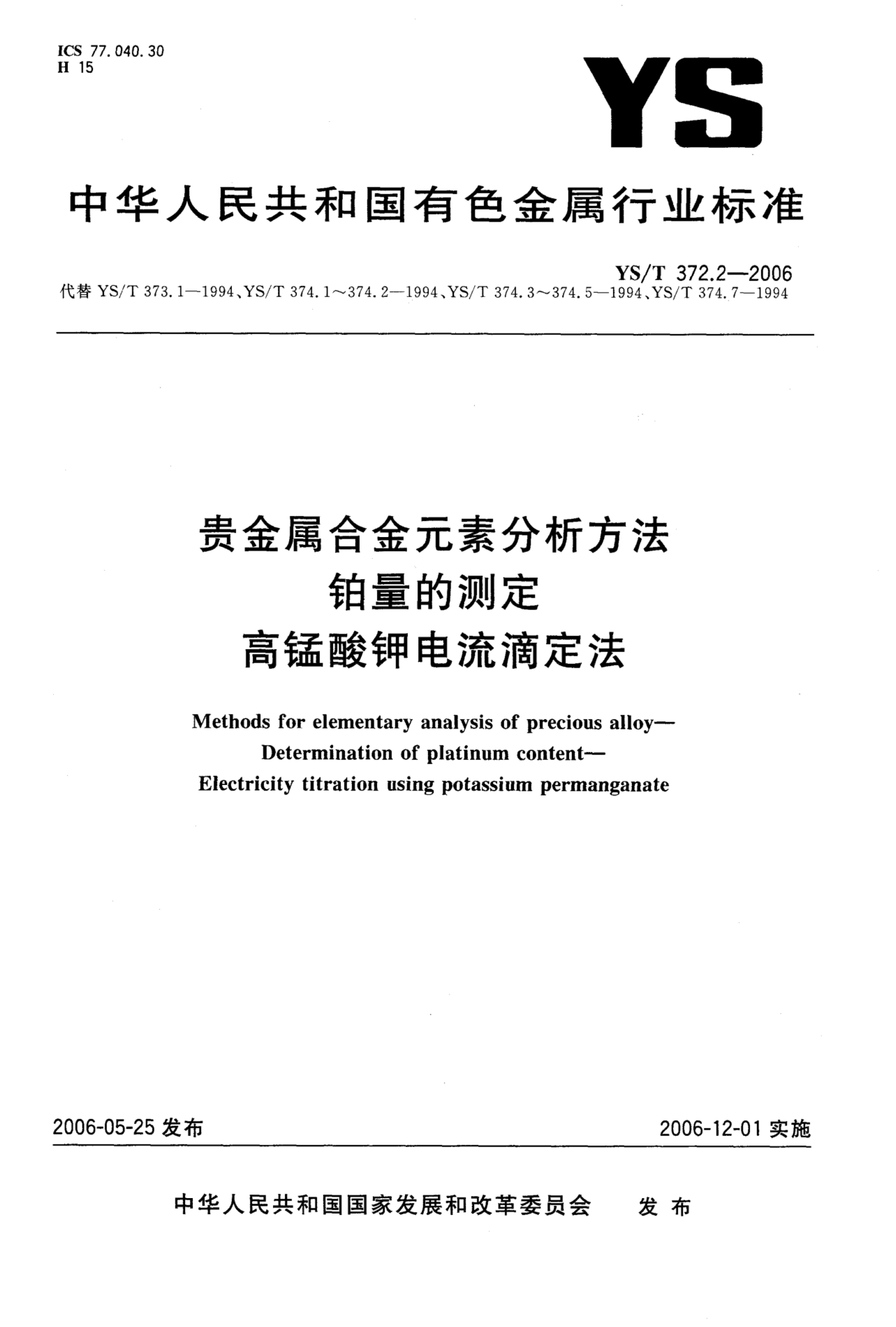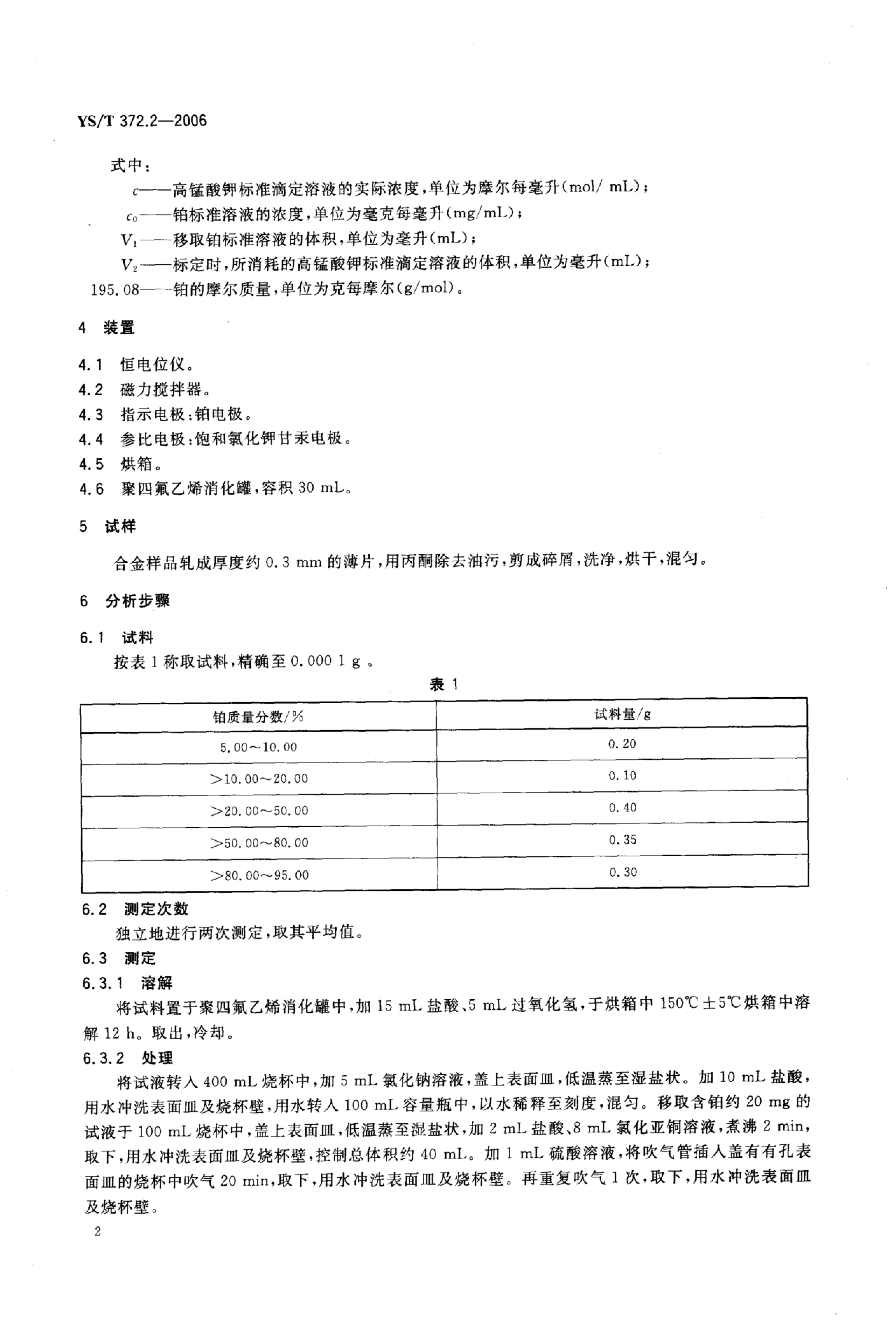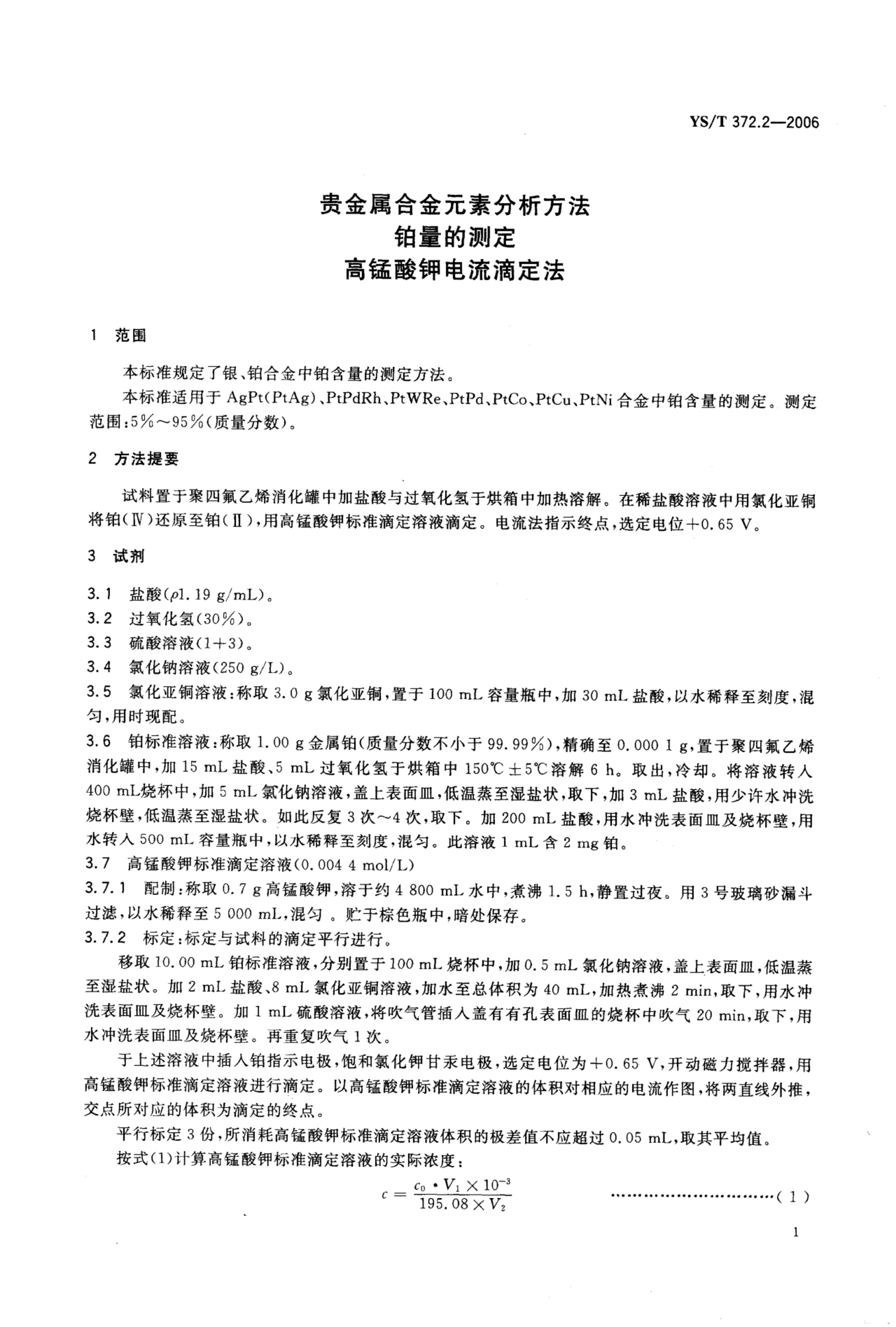 YS/T 372.2-2006 贵金属合金元素分析方法 铂量的测定高锰酸钾电流滴定法