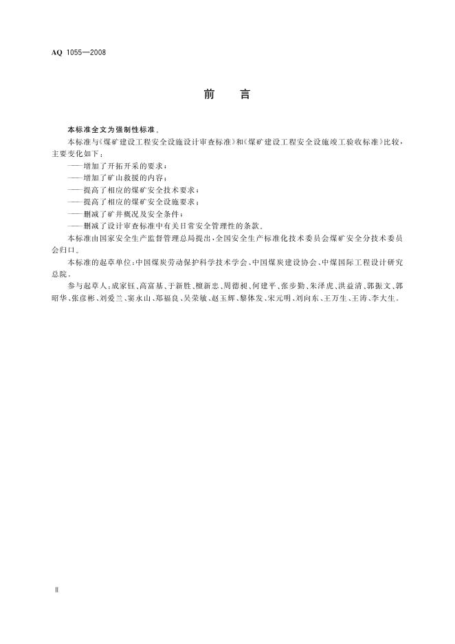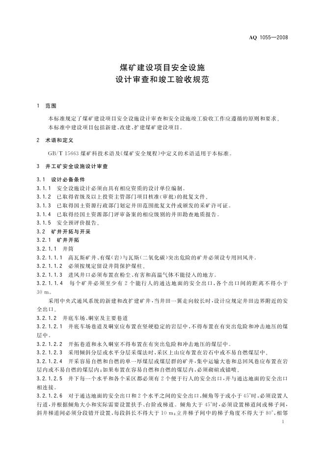 AQ 1055-2008 煤矿建设项目安全设施设计审查和竣工验收规范