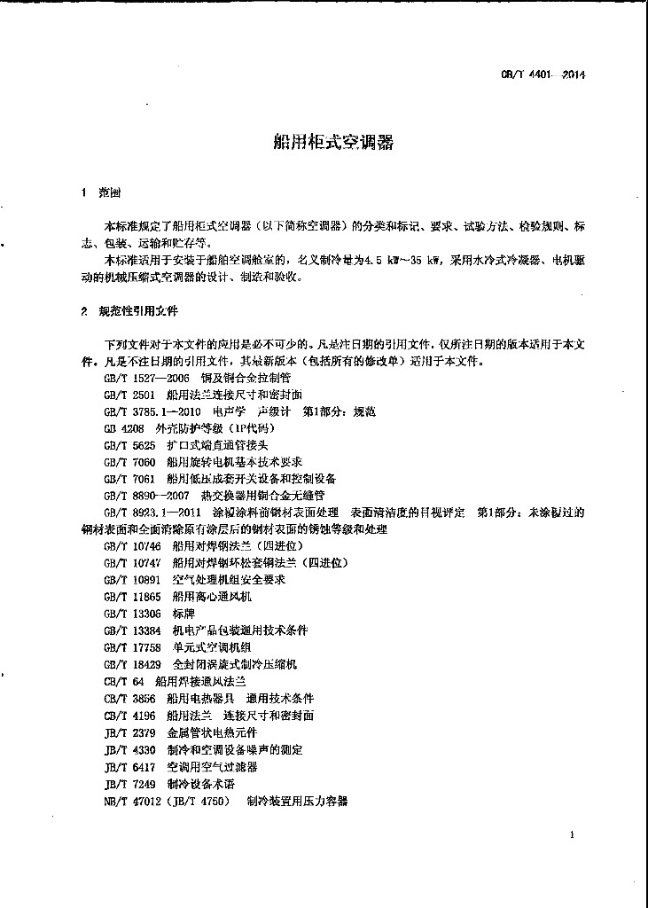 CB/T 4401-2014 船用柜式空调器
