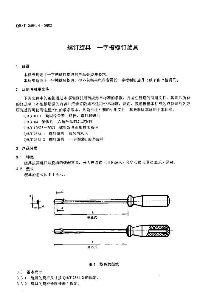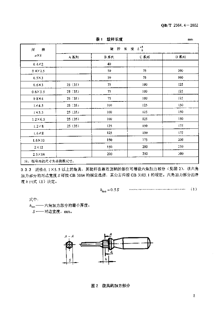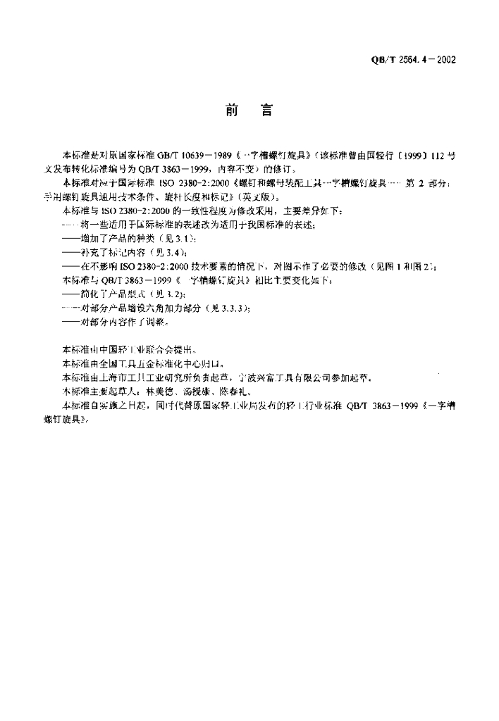 QB/T 2564.4-2002 螺钉旋具 一字槽螺钉旋具