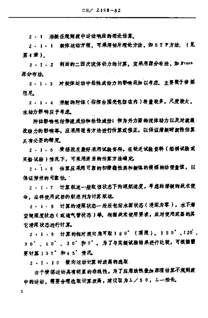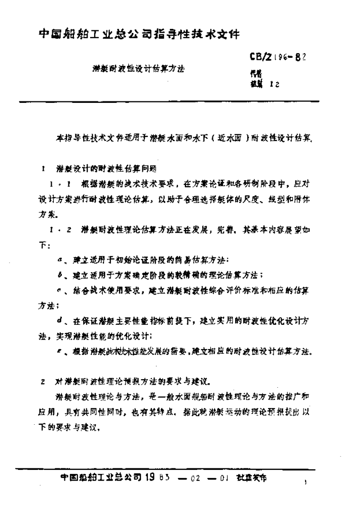 CB/Z 196-1982 潜艇酎波性设计估算方法