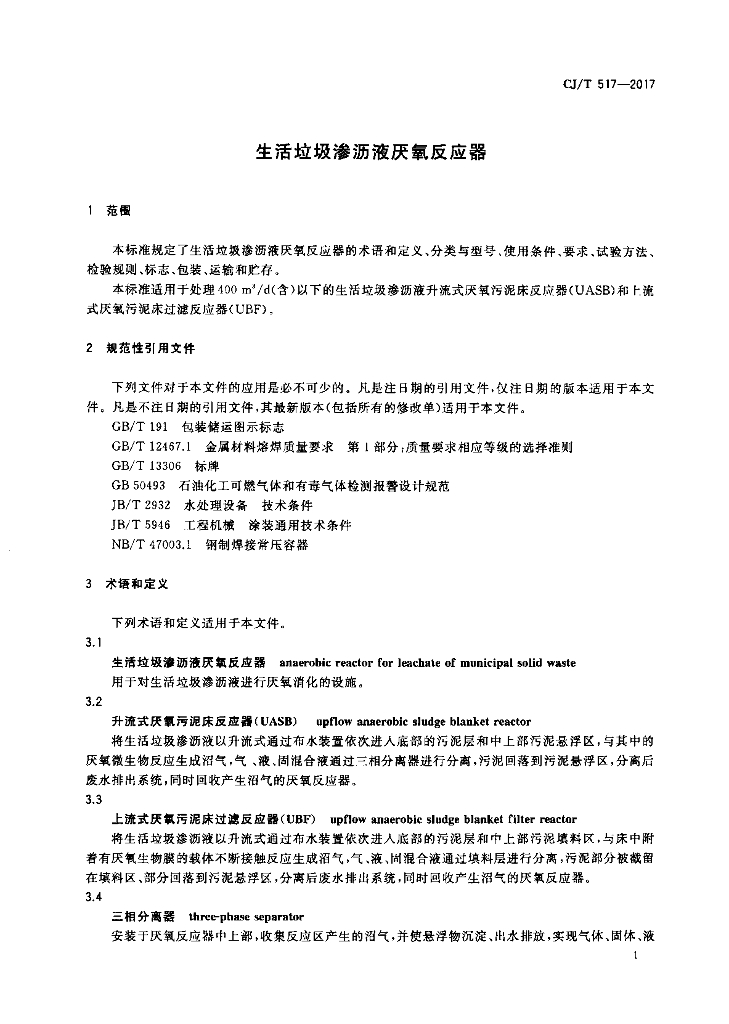 CJ/T 517-2017 生活垃圾渗沥液厌氧反应器