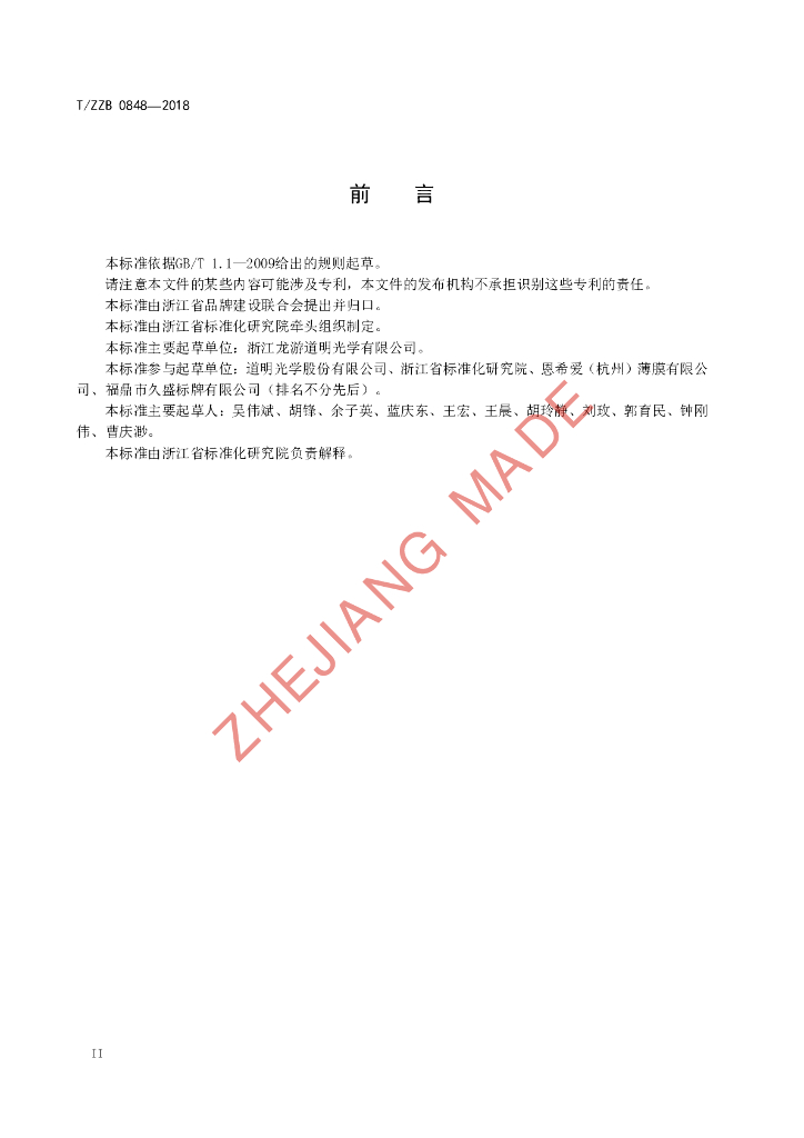 浙江龙游道明光学有限公司、道明光学股份有限公司、浙江省标准化研究院、恩希爱(杭州)薄膜有限公司、福鼎市久盛标牌有限公司