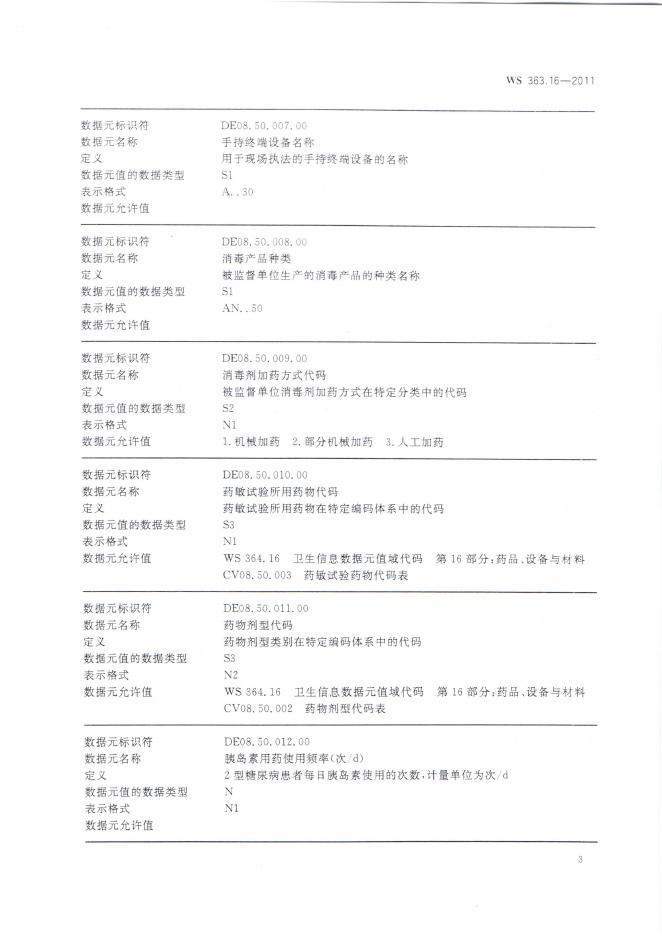 WS 363.16-2011 卫生信息数据元目录 第16部分:药品、设备与材料