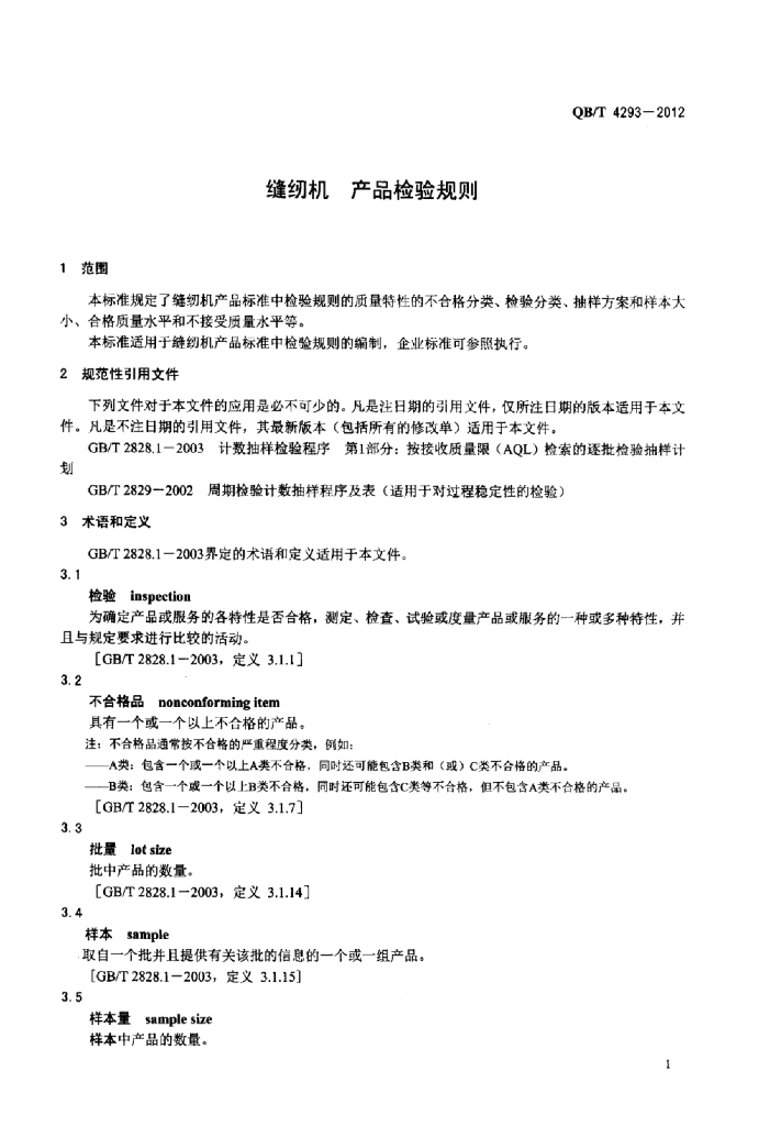QB/T 4293-2012 缝纫机产品检验规则