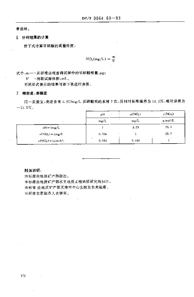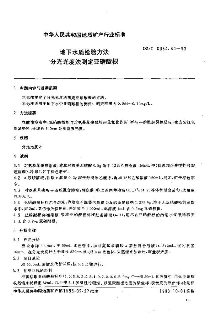 DZ/T 0064.60-1993 地下水质检验方法 分光光度法测定亚硝酸根