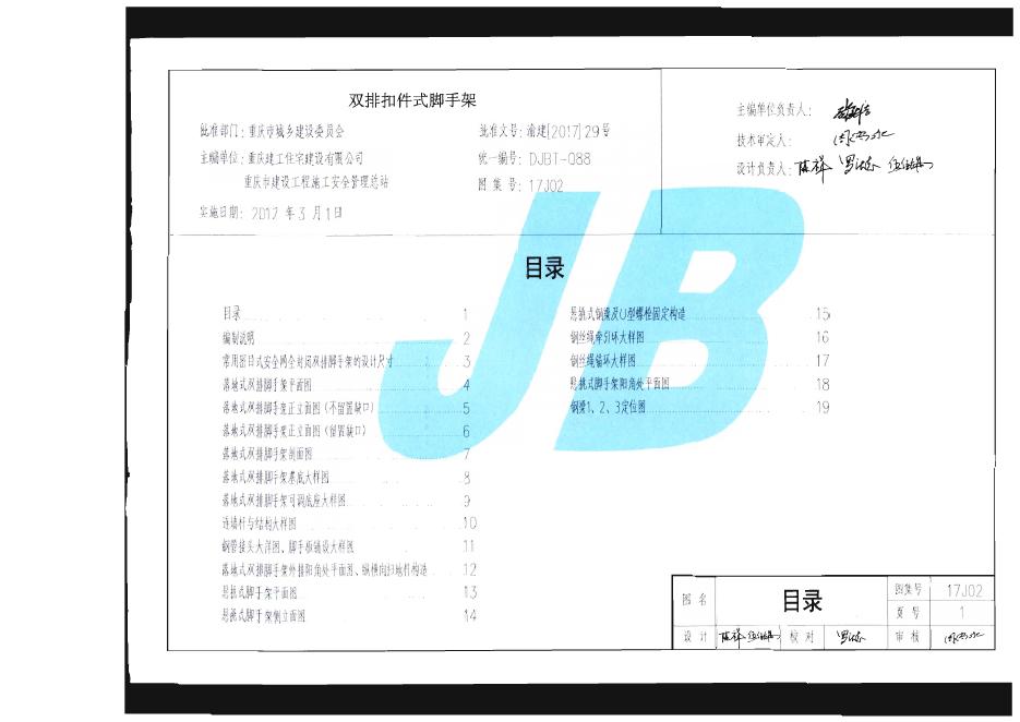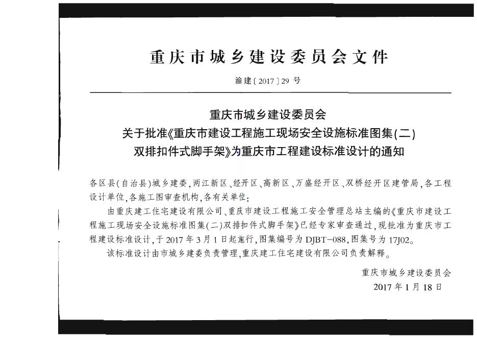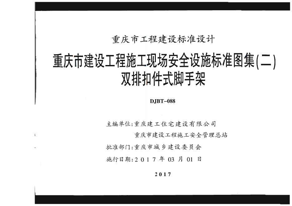 17J02 重庆市建设工程施工现场安全设施标准图集(二)双排扣件式脚手架(DJBT 088-2017)