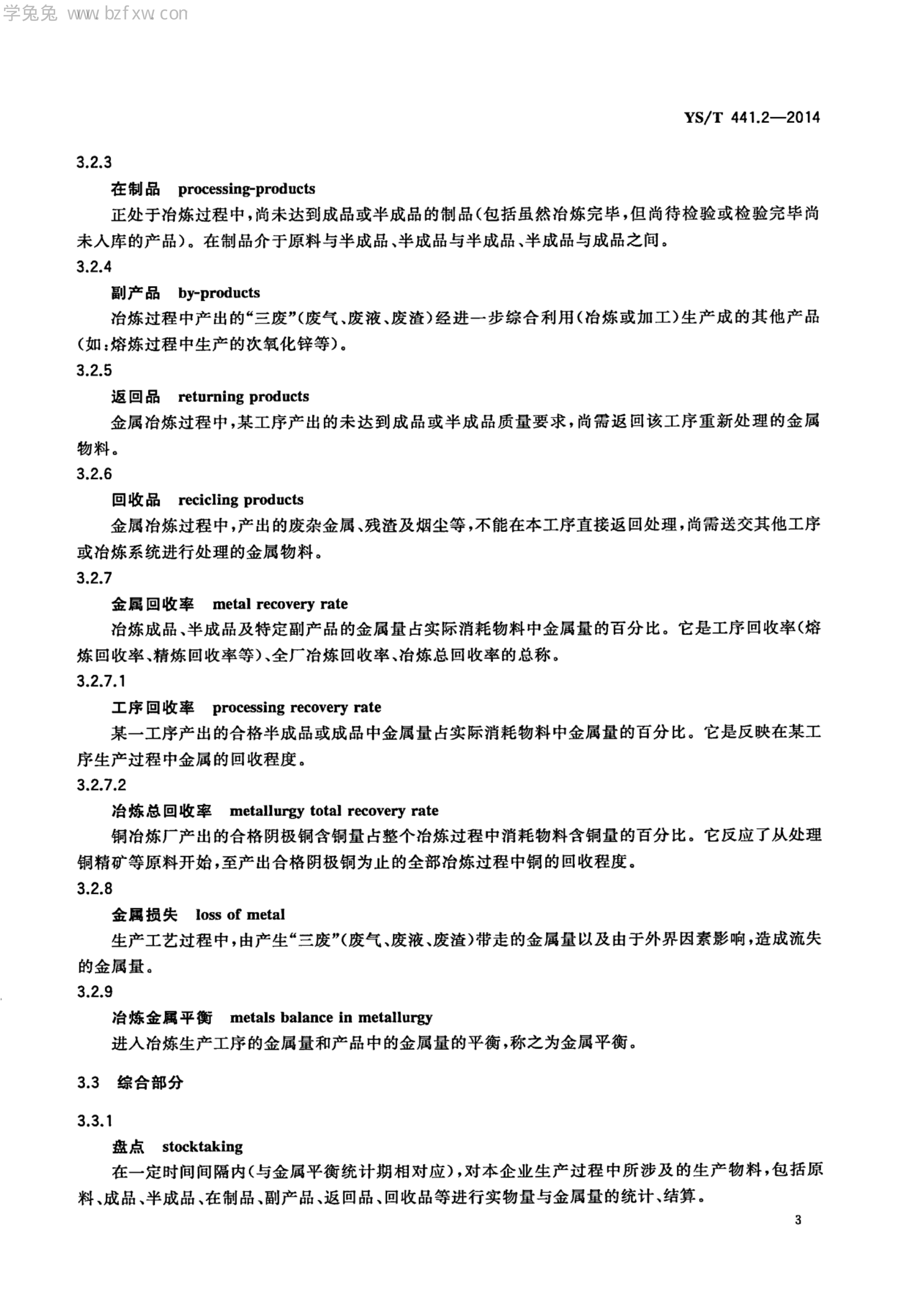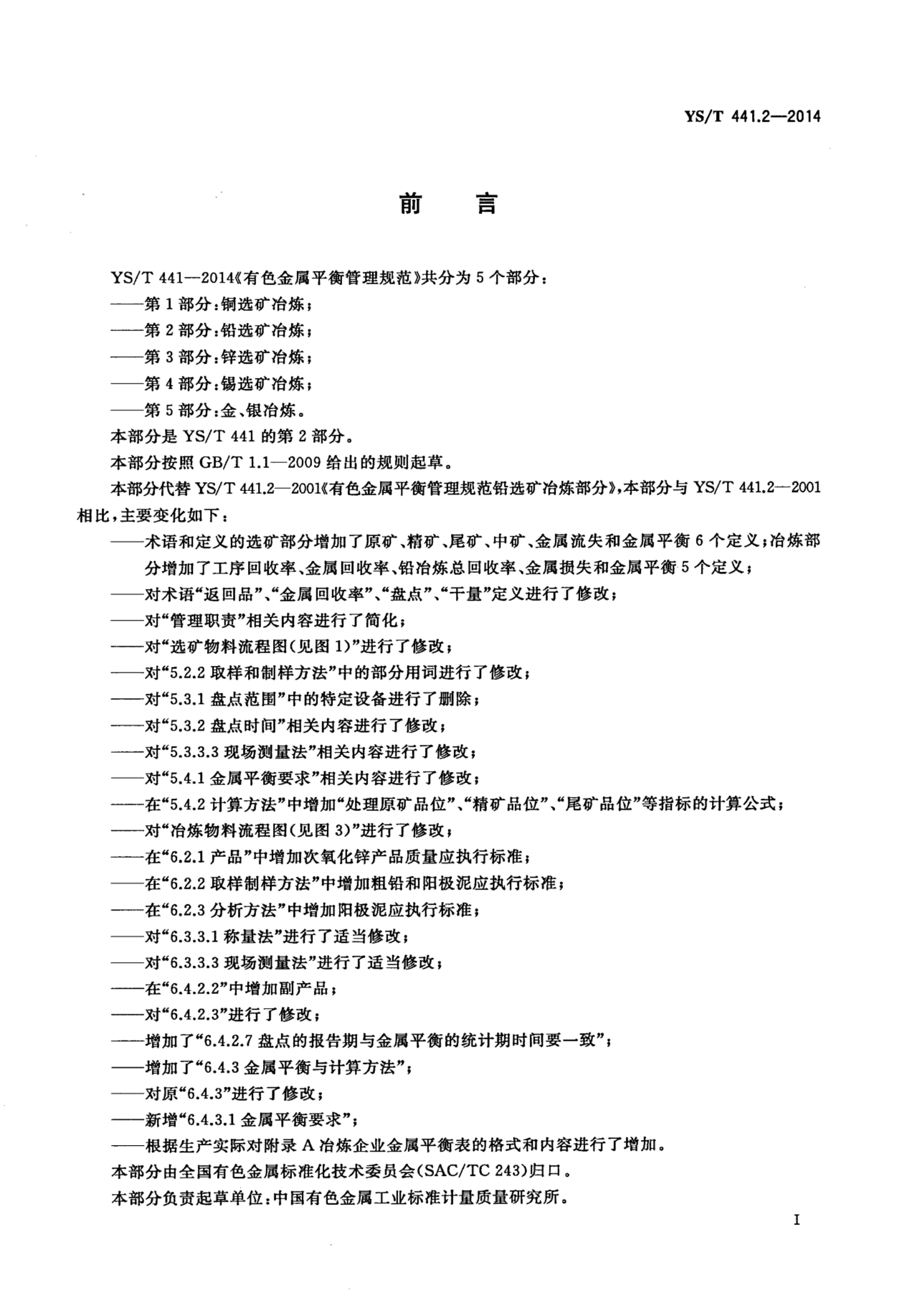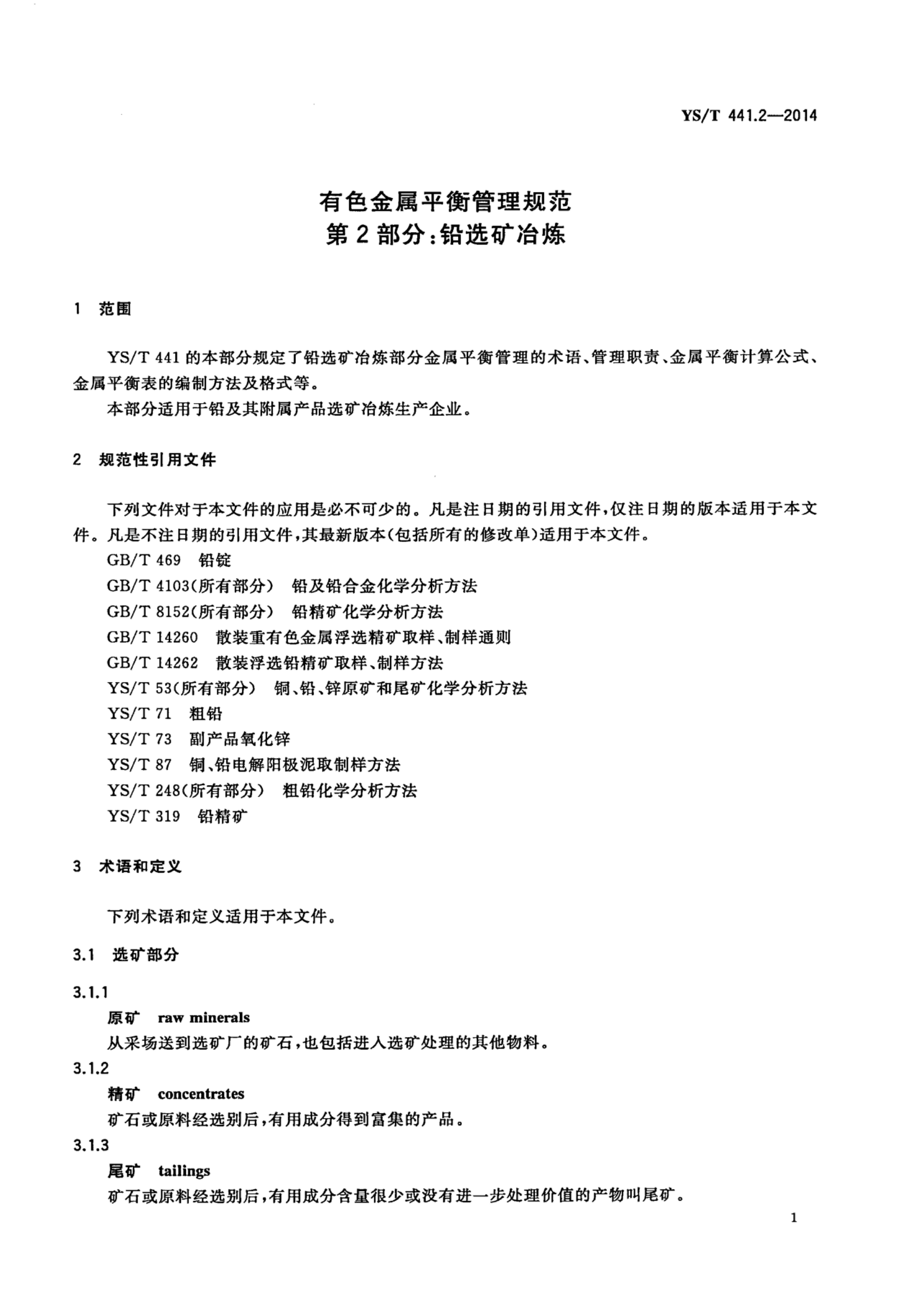 YS/T 441.2-2014 有色金属平衡管理规范 第2部分:铅选矿冶炼