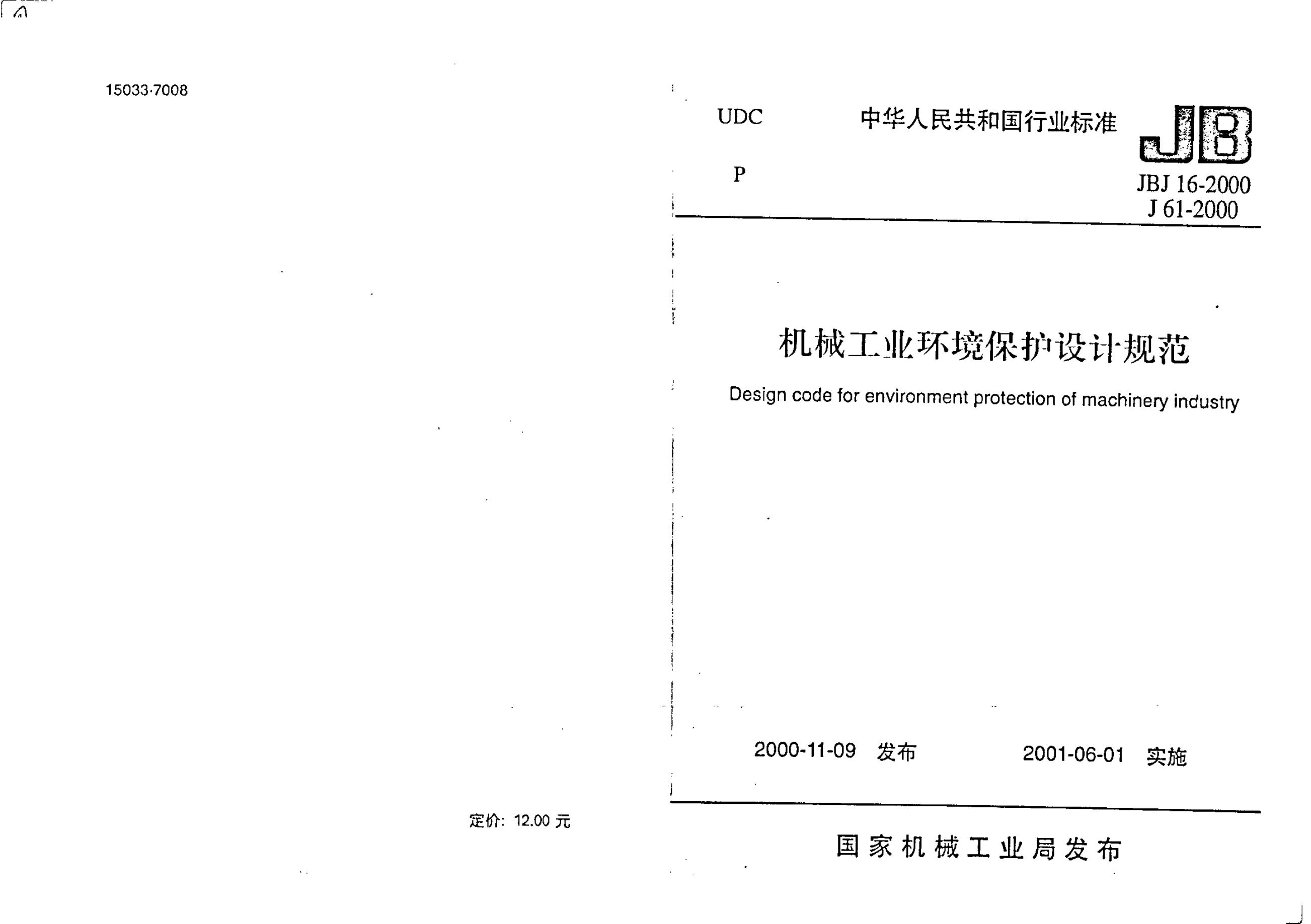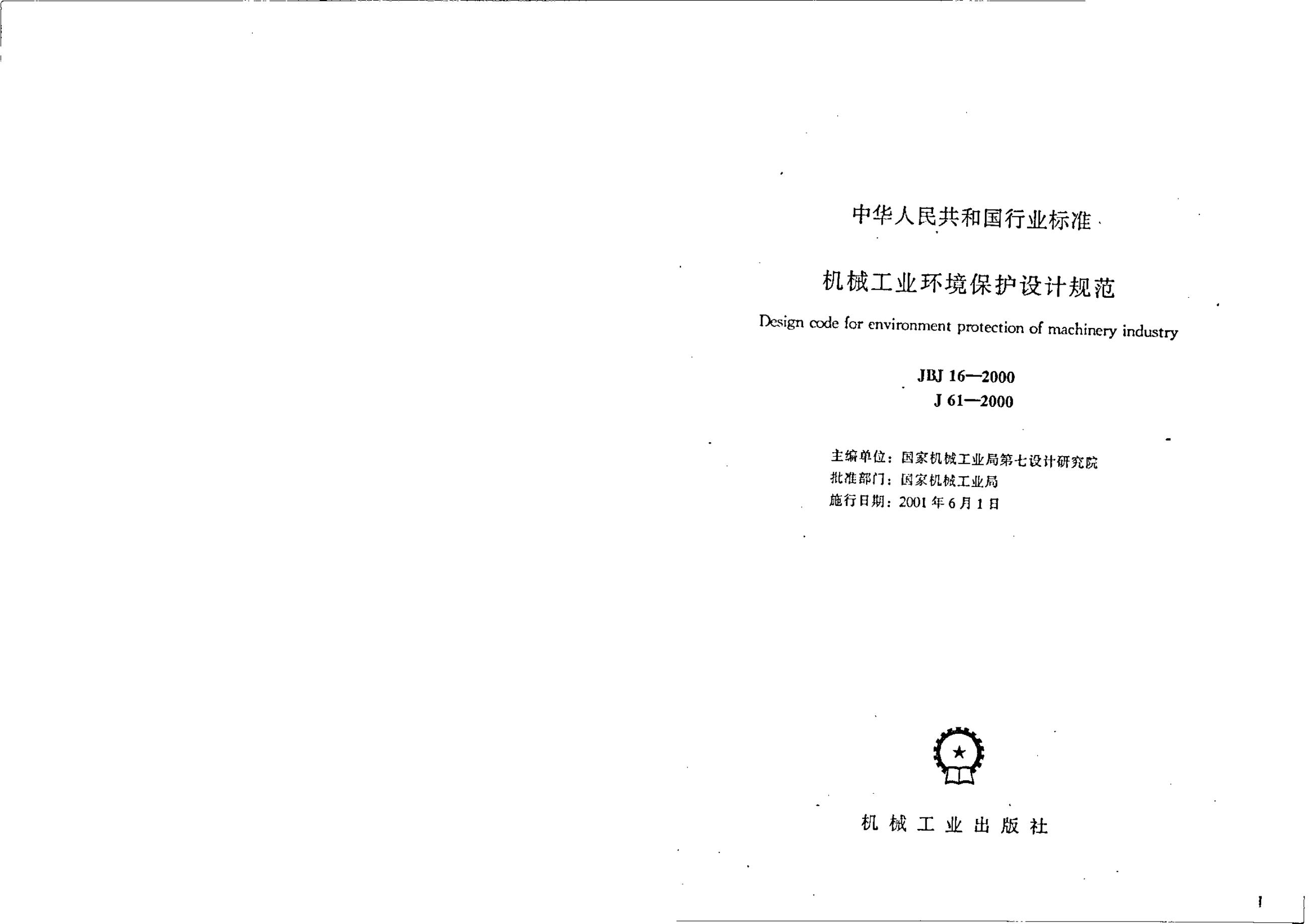JBJ 16-2000 机械工业环境保护设计规范(附条文说明)