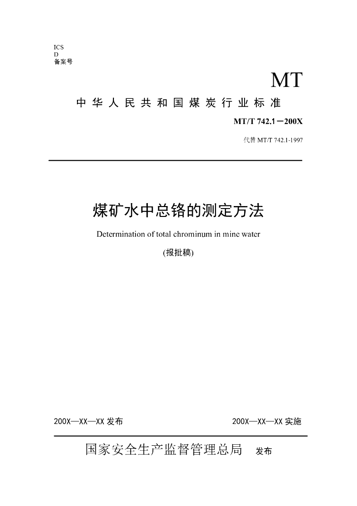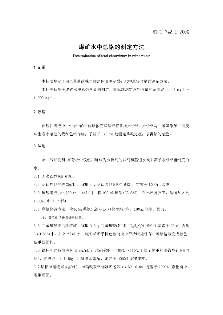 MT/T 742.1-2011 煤矿水中总铬的测定方法