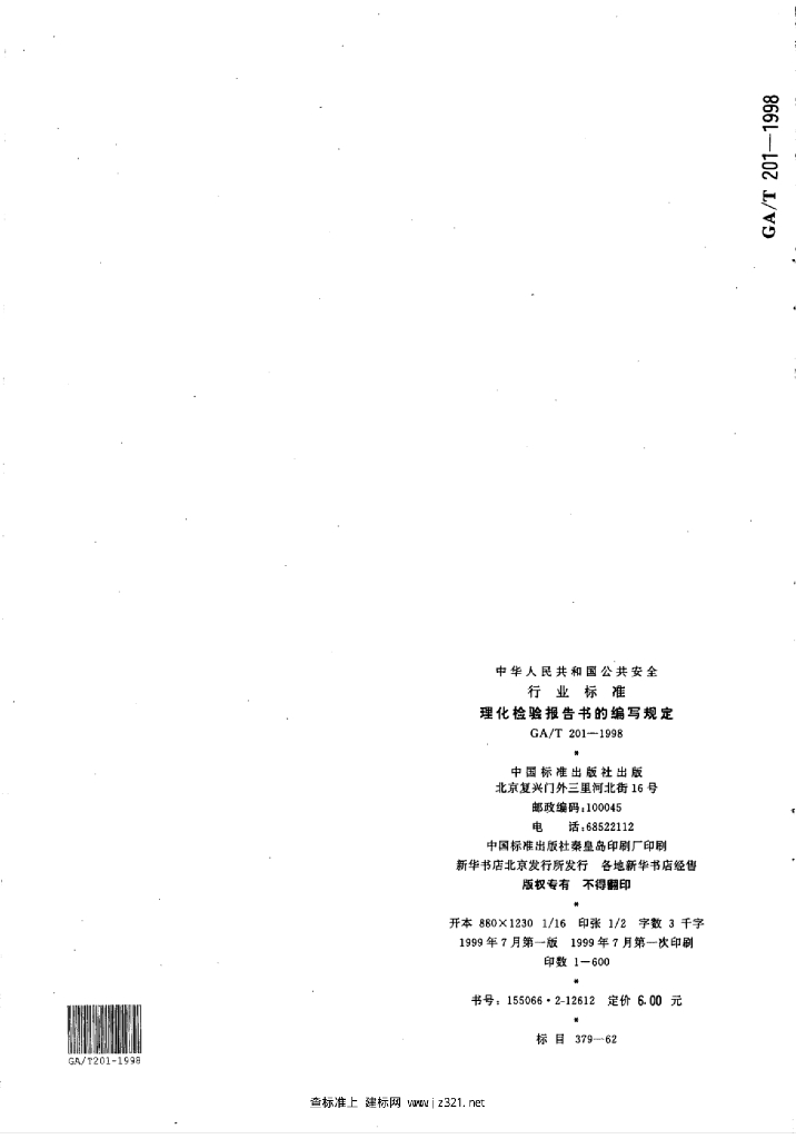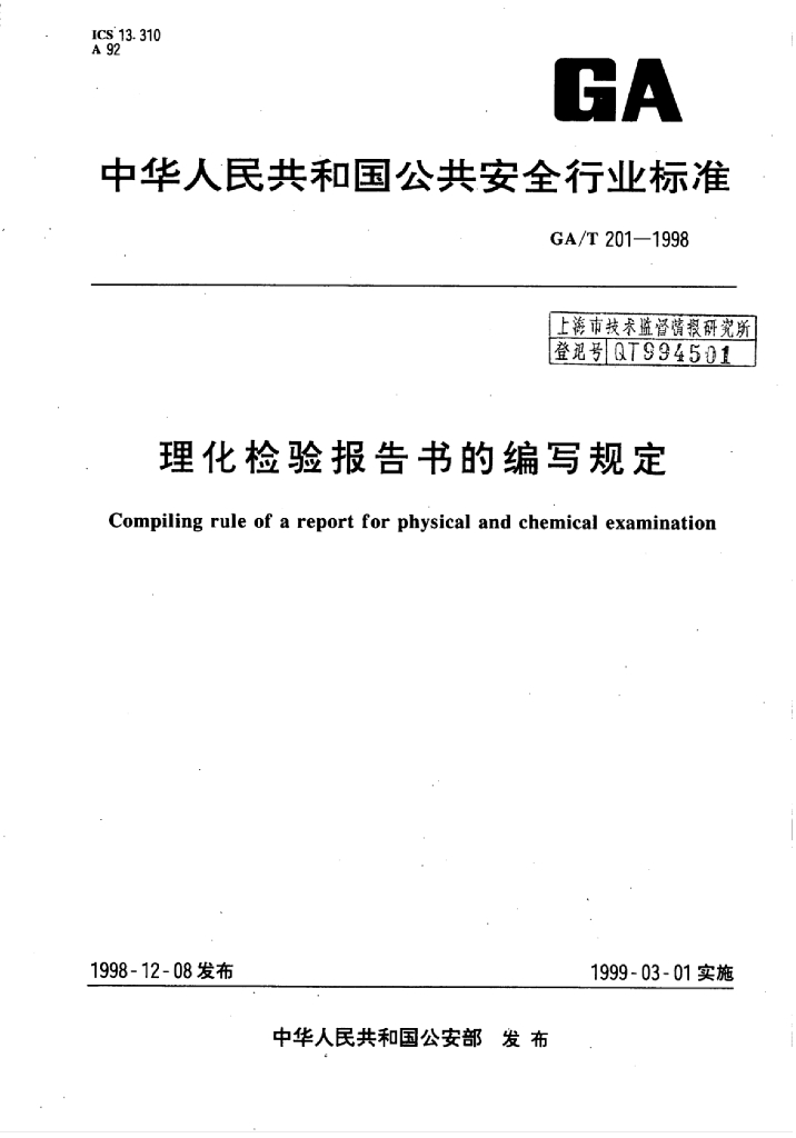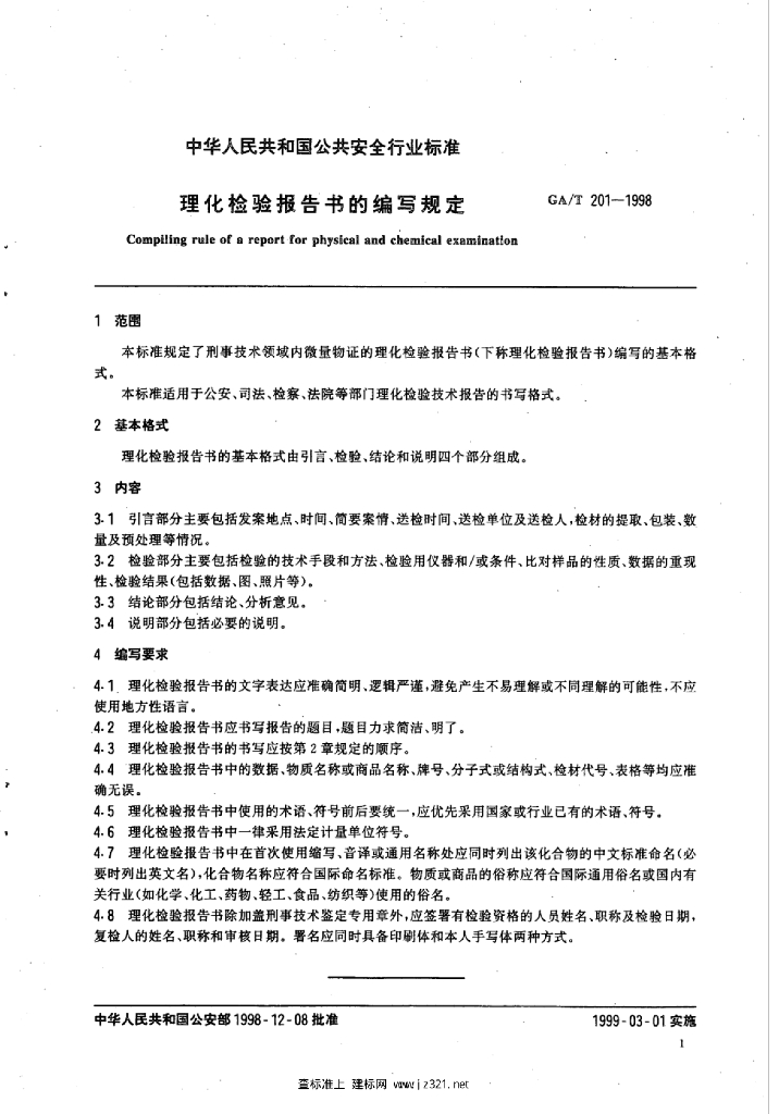 GA/T 201-1998 理化检验报告书的编写规定