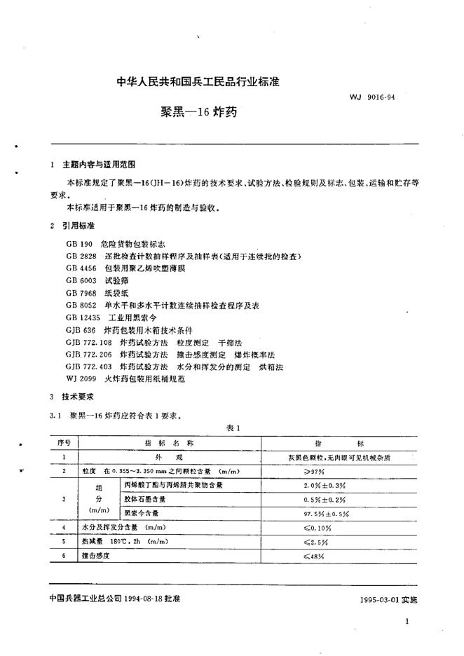 WJ 9016-1994 聚黑-16炸药