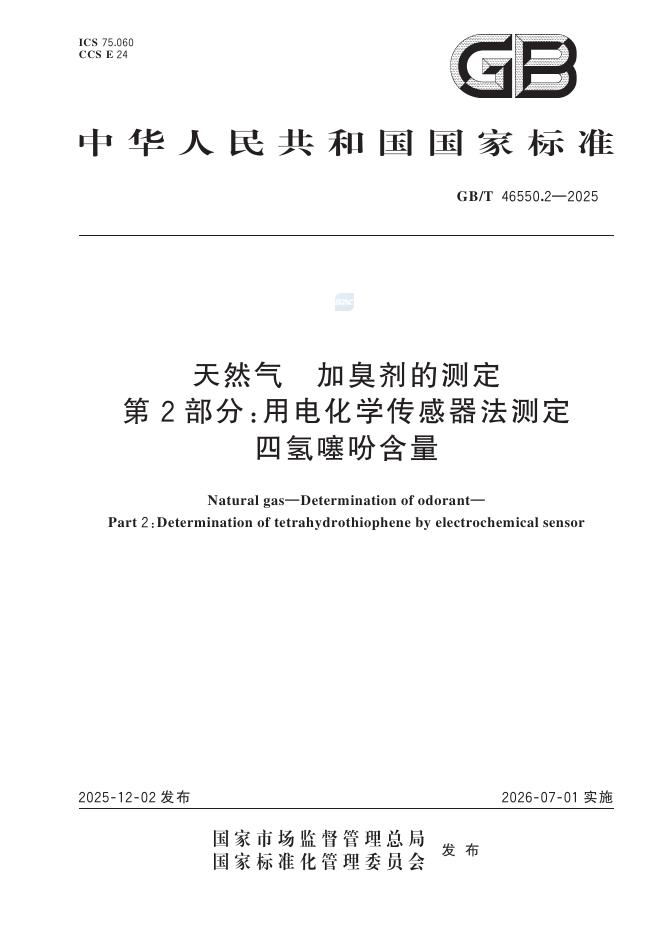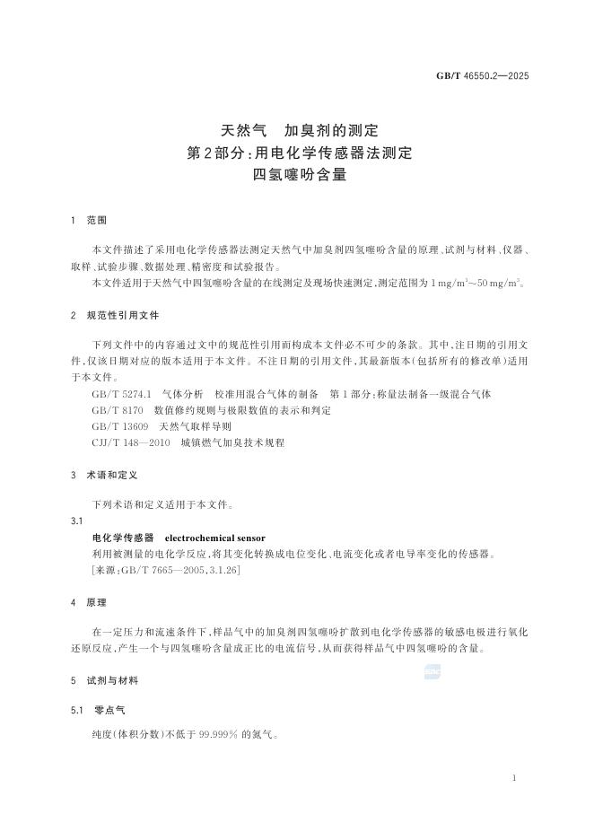 GB/T 46550.2-2025 天然气 加臭剂的测定 第2部分:用电化学传感器法测定四氢噻吩含量