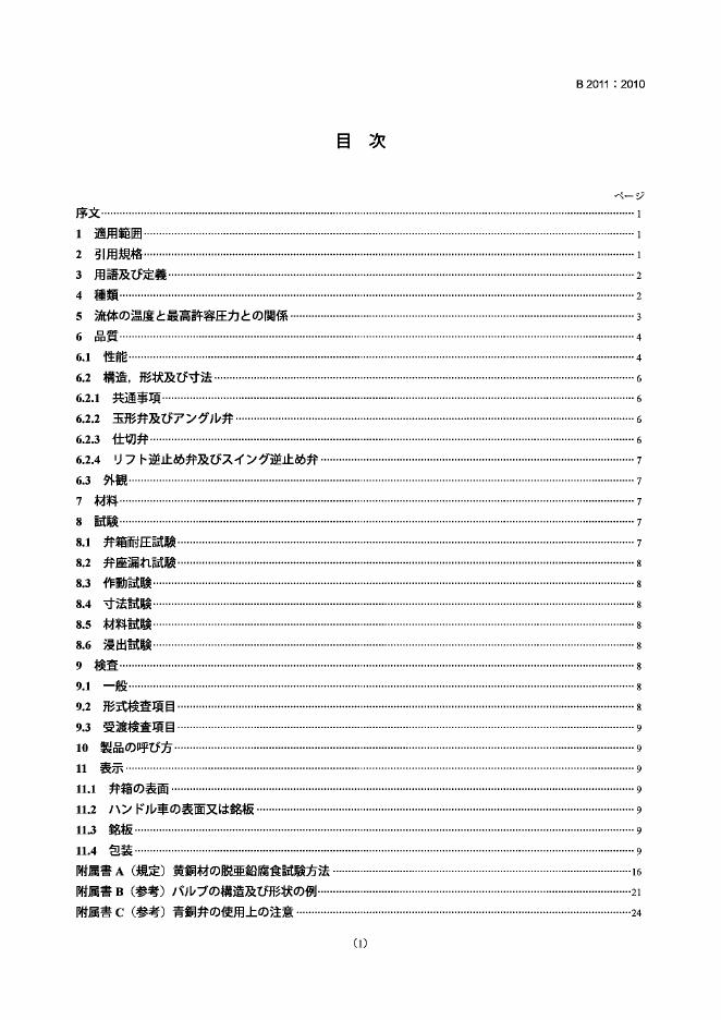 JIS B2011-2010(2011) 铜闸阀、球形阀、直角形阀和单向阀(含2011年修改单)