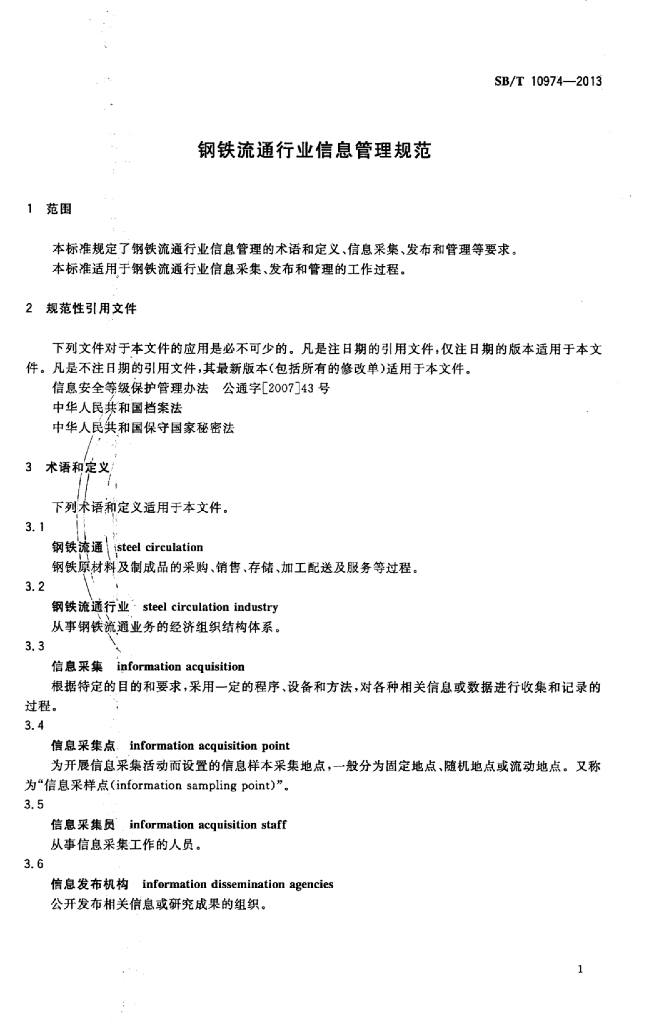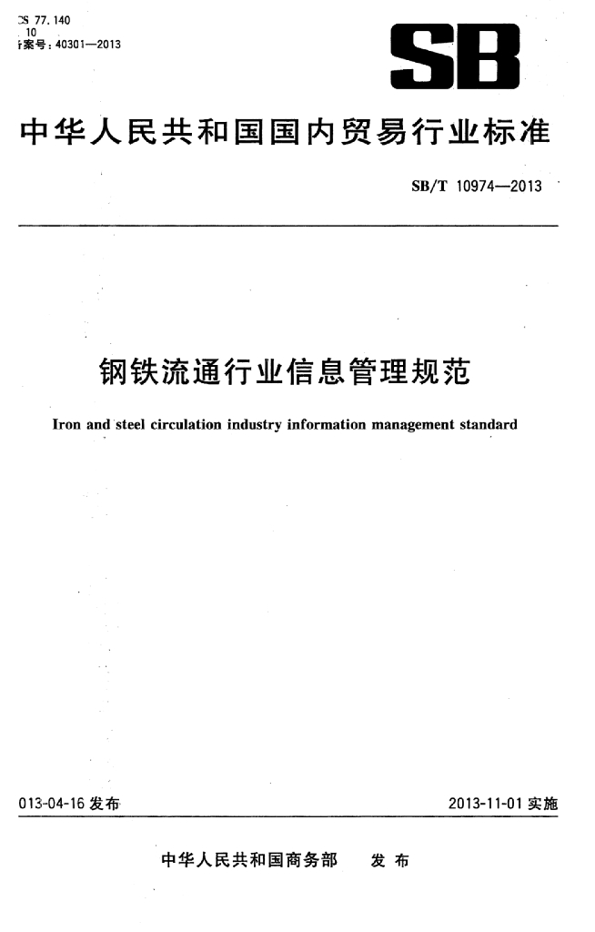 SB/T 10974-2013 钢铁流通企业信息管理规范
