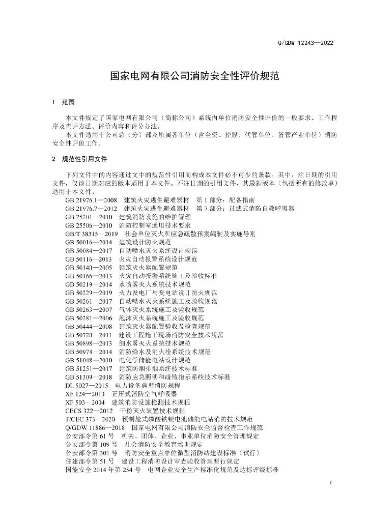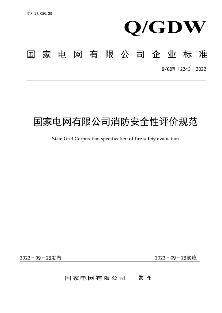 Q/GDW 12243-2022 国家电网有限公司消防安全性评价规范