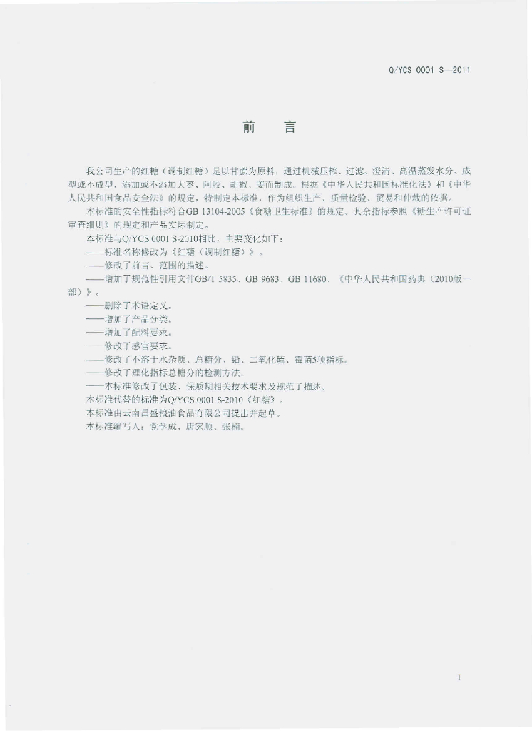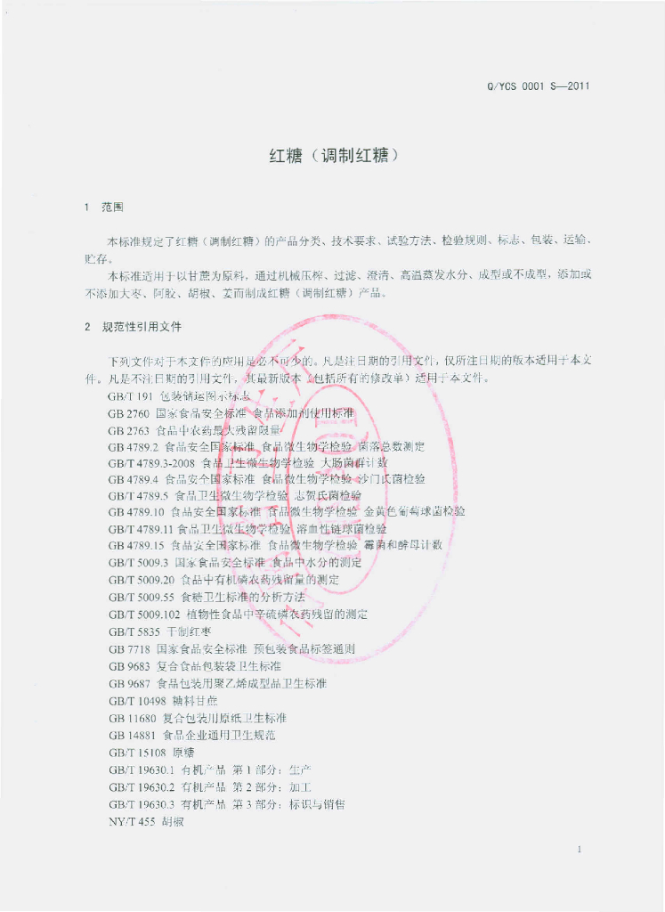 Q/YCS 0001S-2011 红糖(调制红糖)