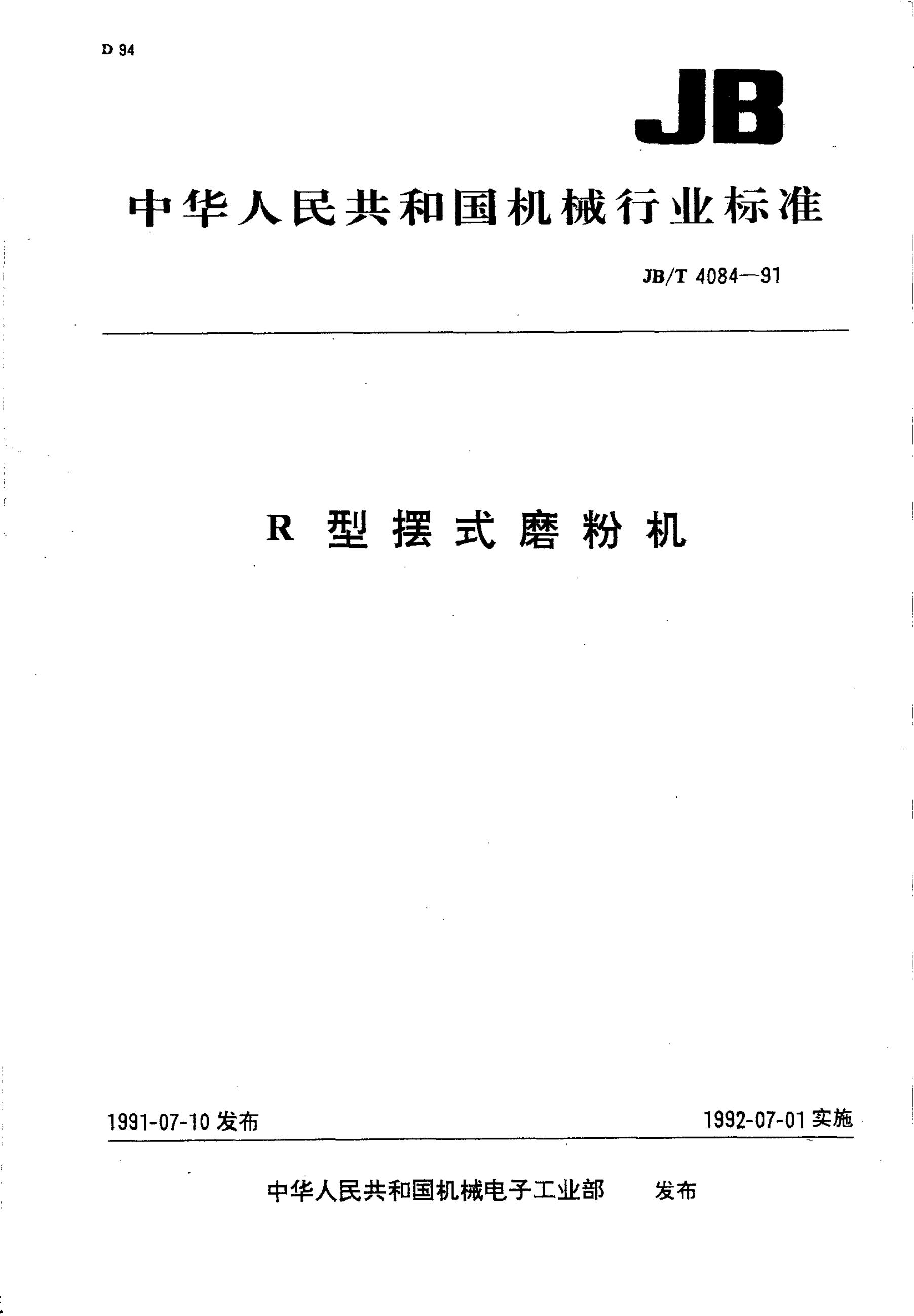 JB/T 4084-1991 R型摆式磨粉机