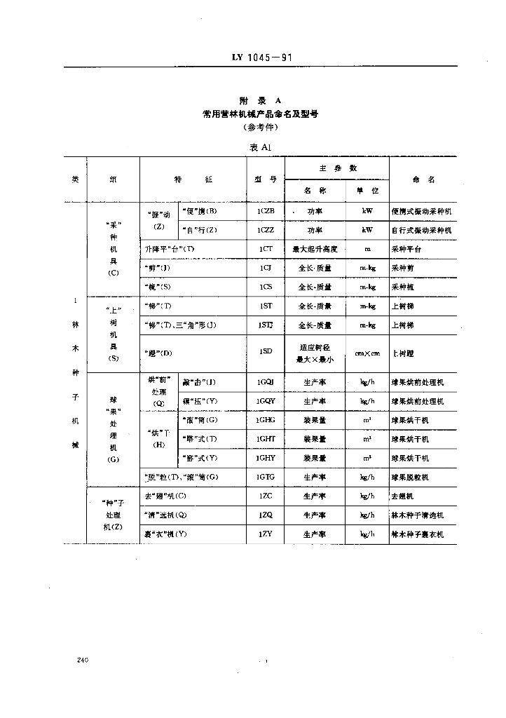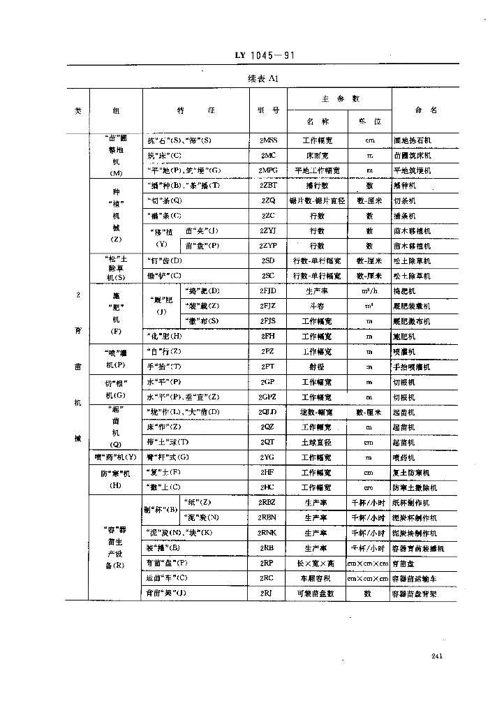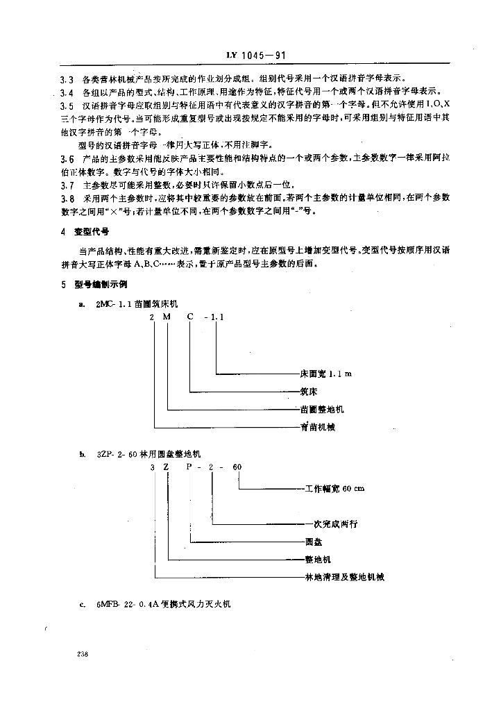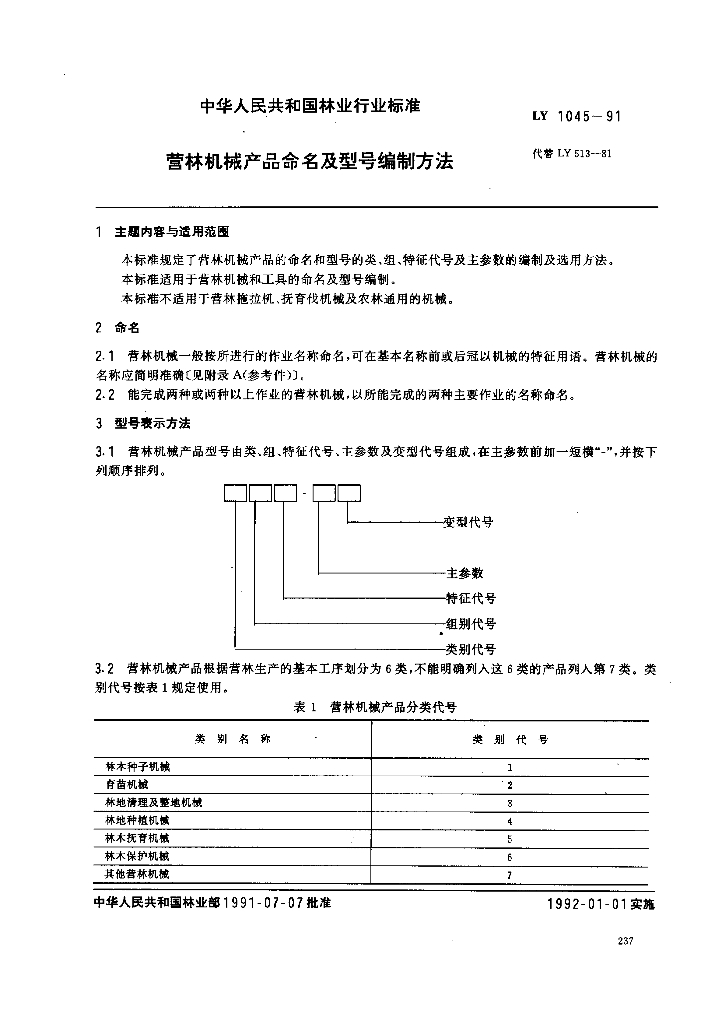 LY 1045-1991 营林机械产品命名及型号编制方法