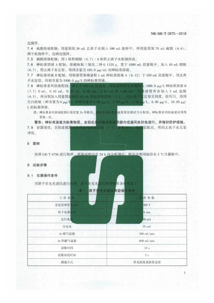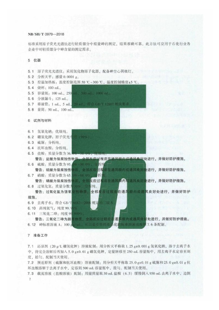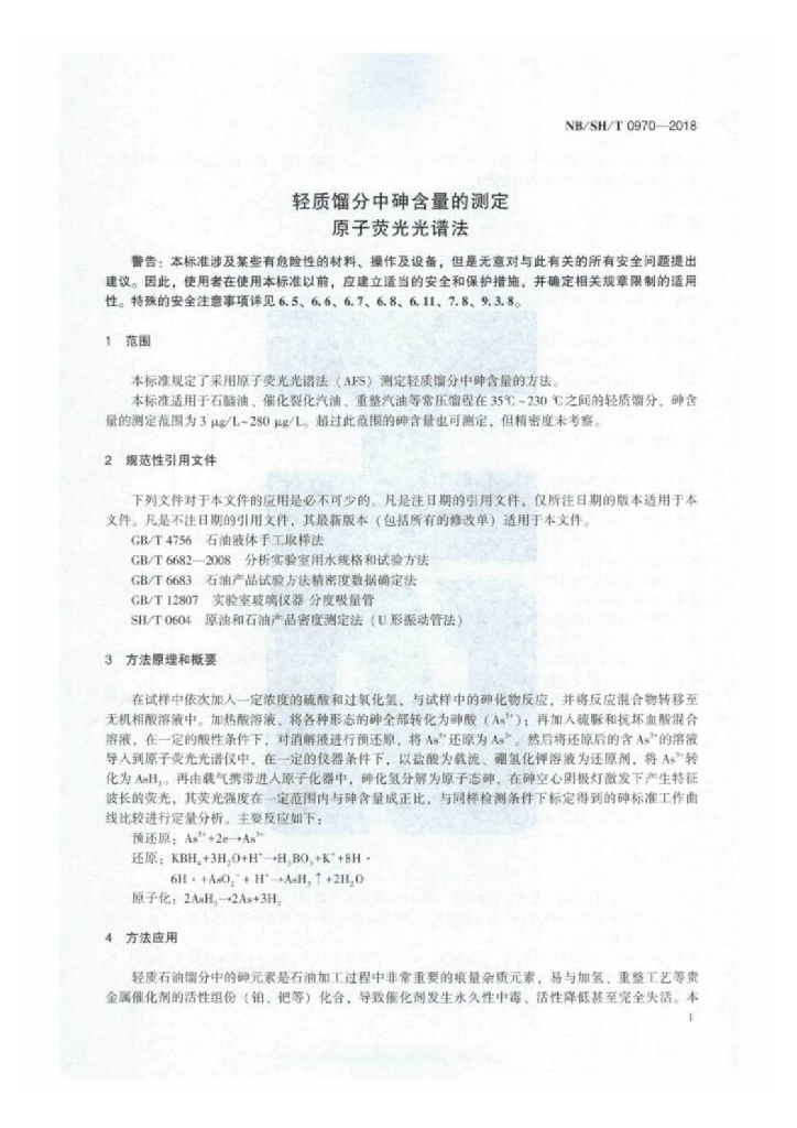 NB/SH/T 0970-2018 轻质馏分中砷含量的测定 原子荧光光谱法