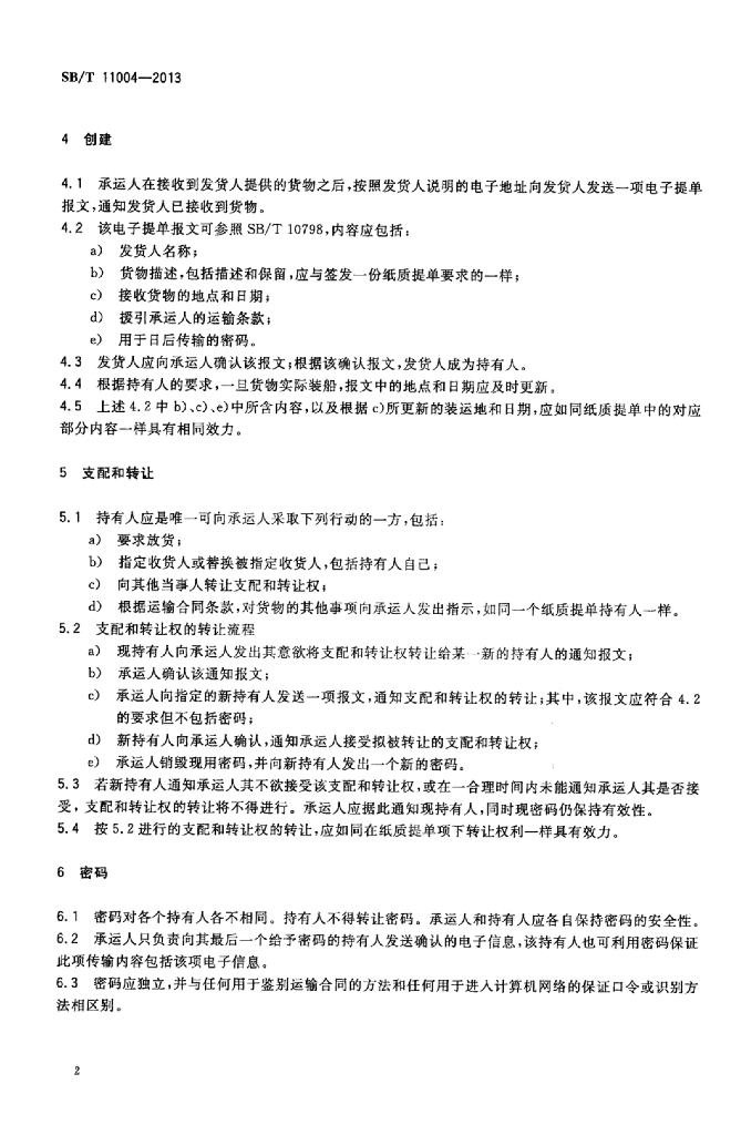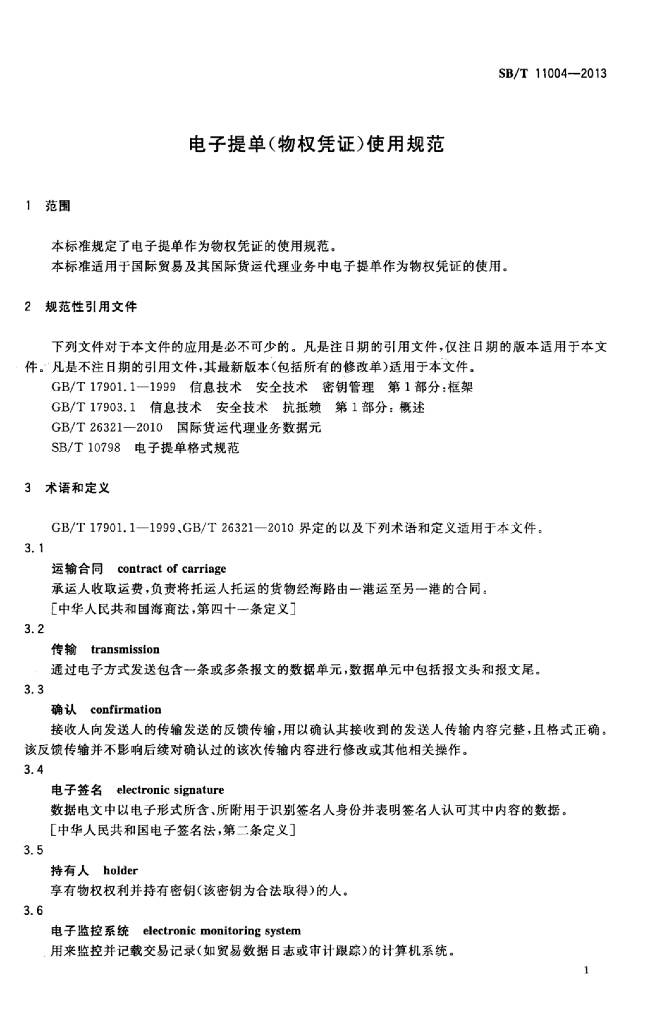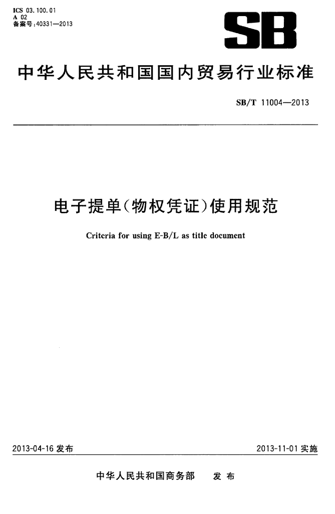 SB/T 11004-2013 电子提单(物权凭证)使用规范