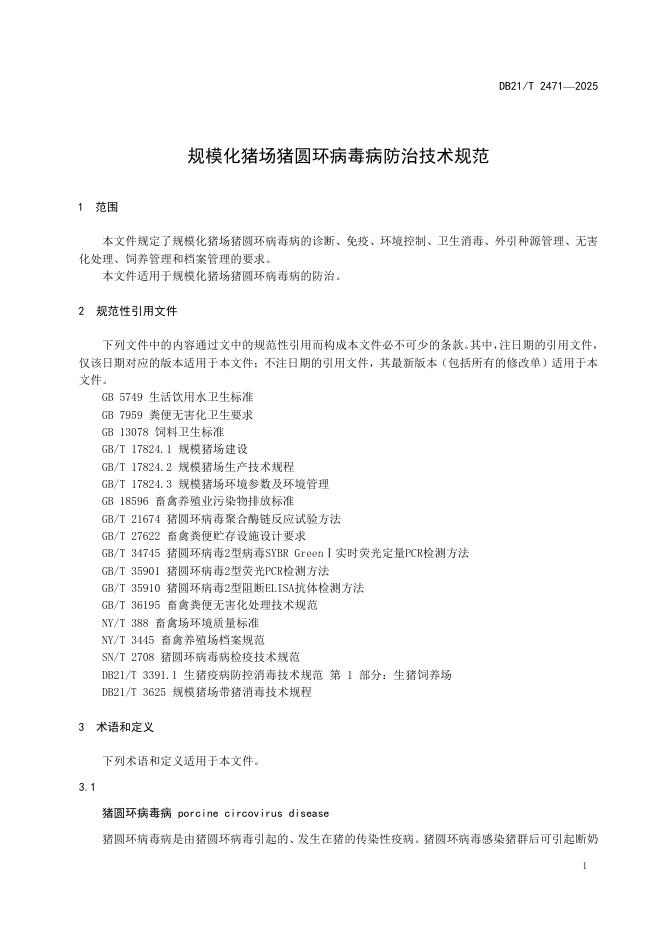 DB21/T 2471-2025 规模化猪场猪圆环病毒病防治技术规范