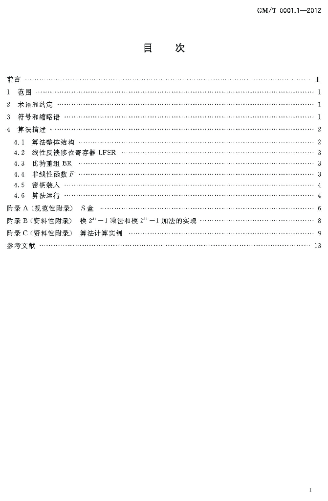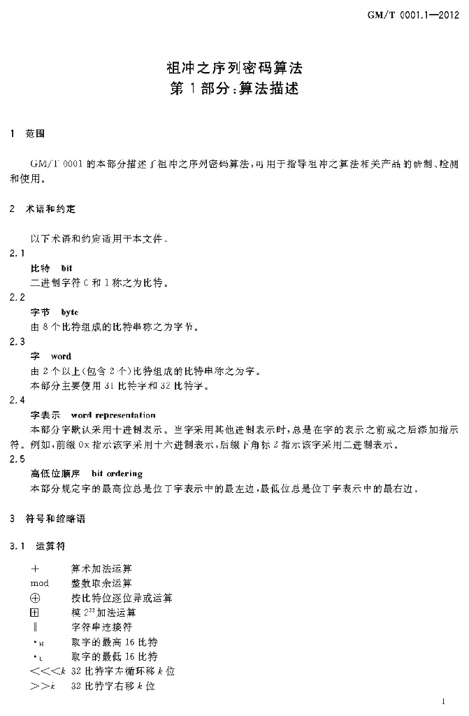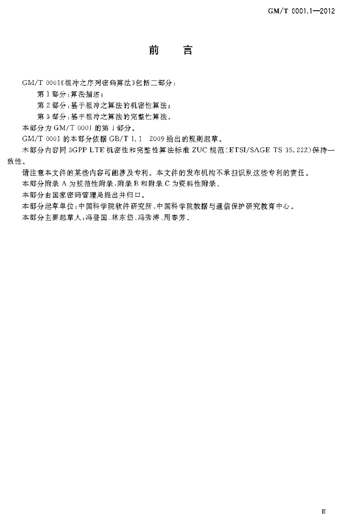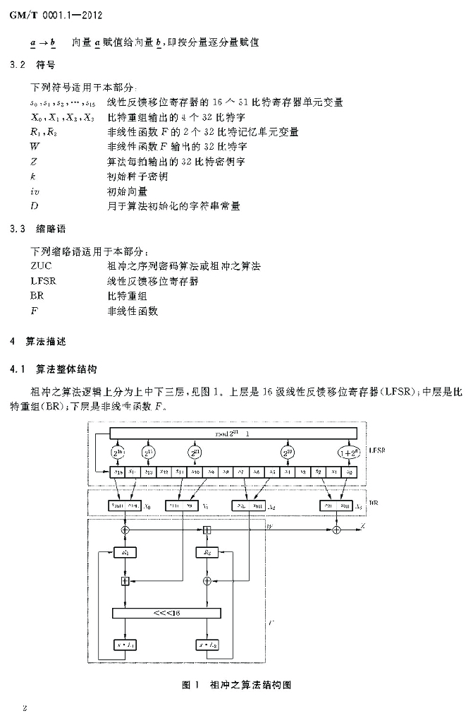 GM/T 0001.1-2012 祖冲之序列密码算法 第1部分:算法描述