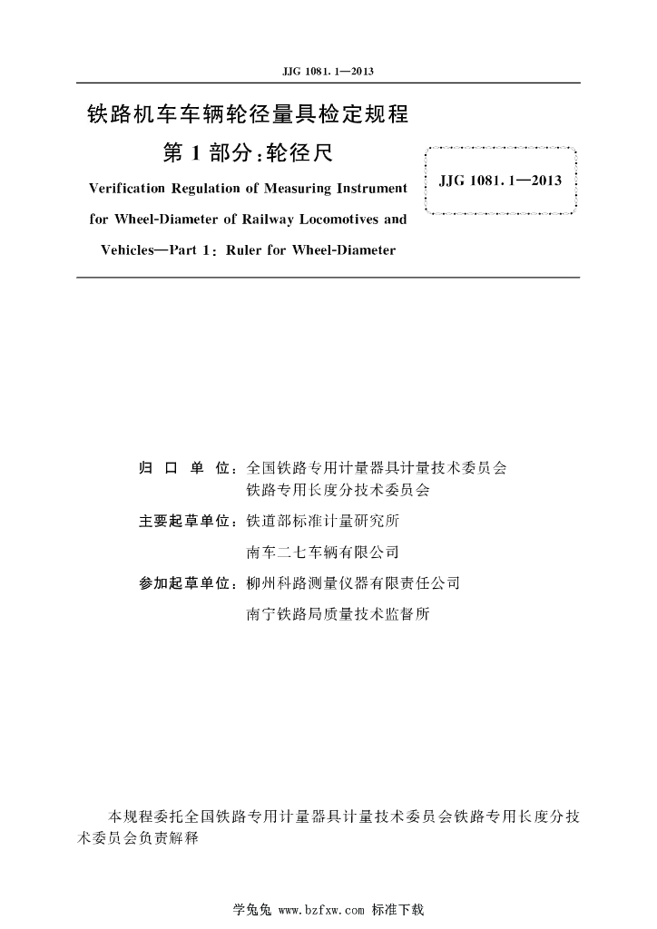 铁道部标准计量研究所、南车二七车辆有限公司、柳州科路测量仪器有限责任公司、南宁铁路局质量技术监督所
