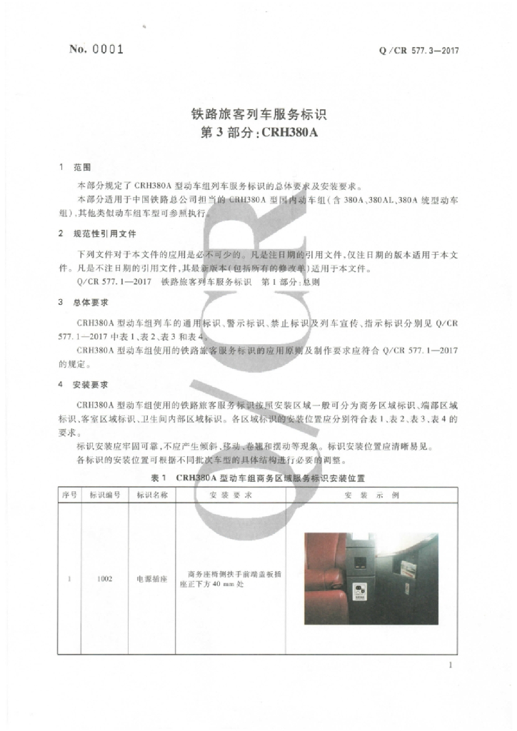 Q/CR 577.3-2017 铁路旅客列车服务标识 第3部分:CRH380A
