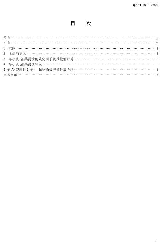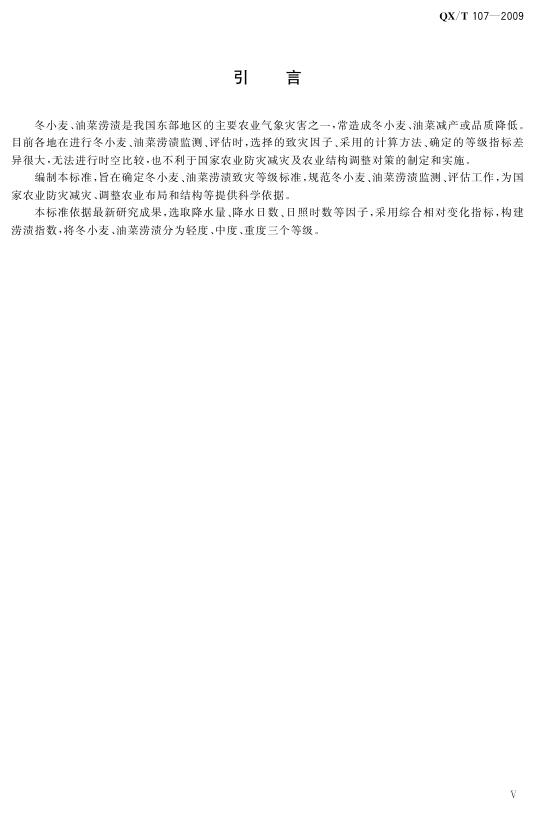 QX/T 107-2009 冬小麦、油菜涝渍等级